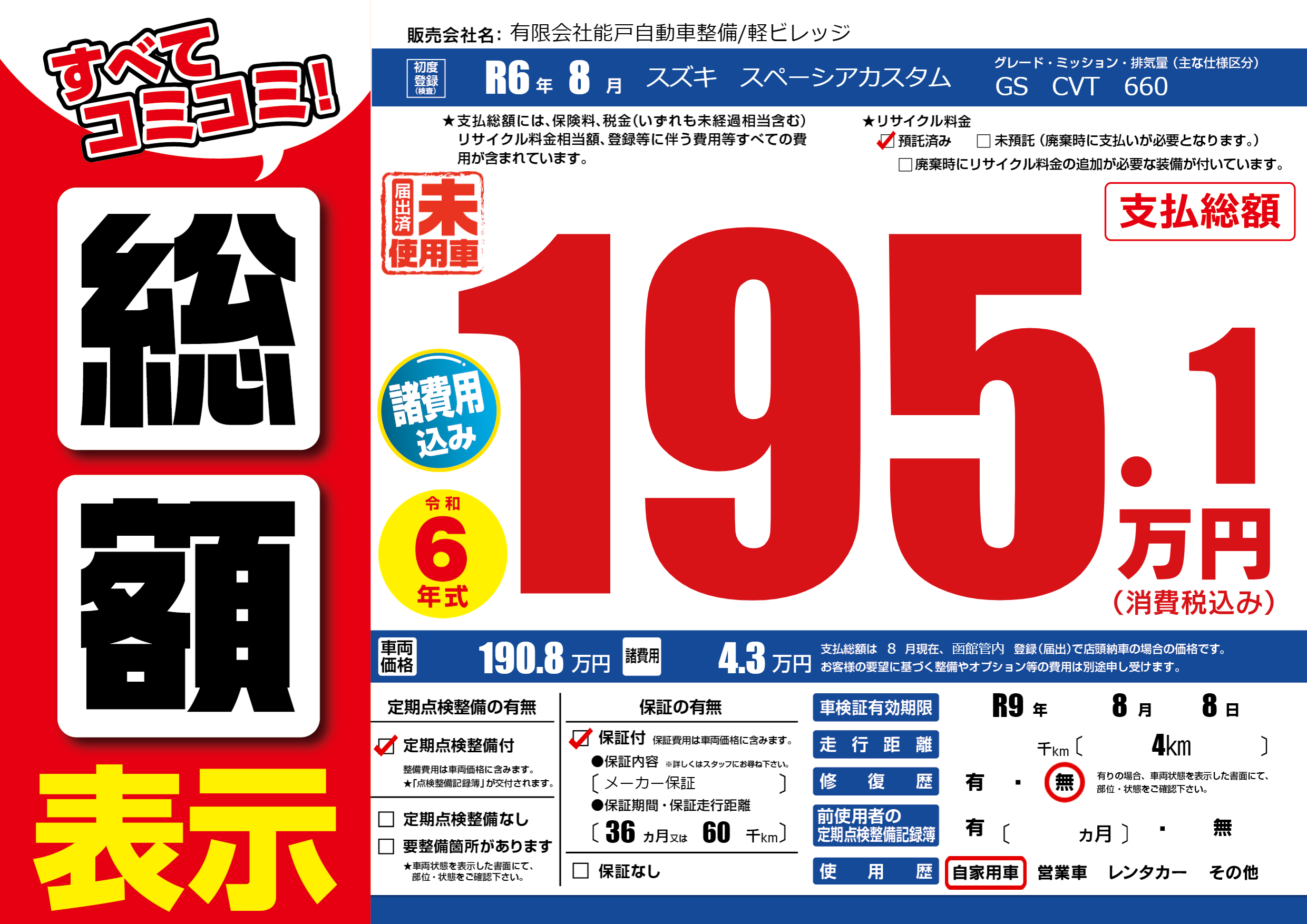| 車検制限 | R9年 8月 8日 | ||