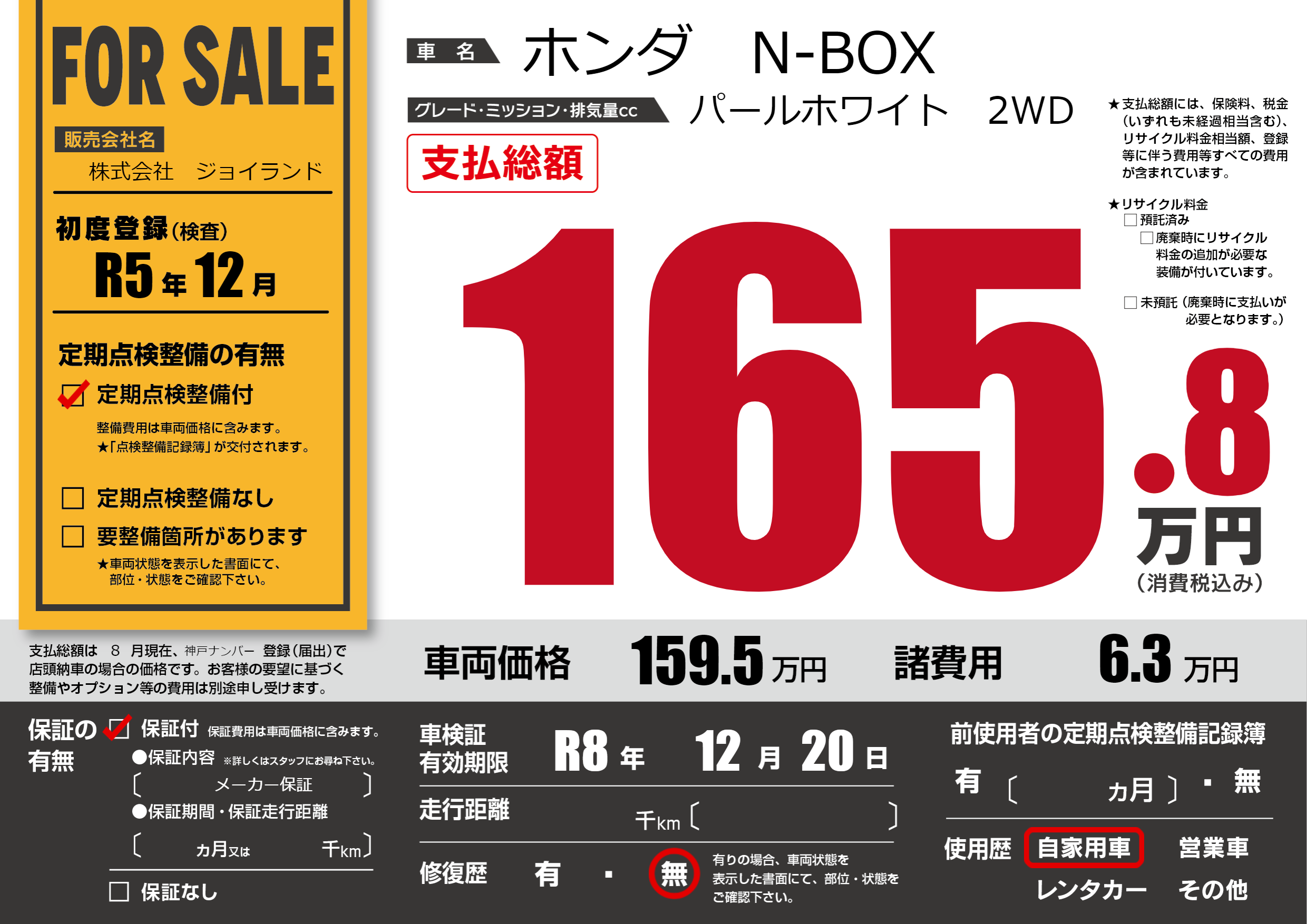 保証付き 保証内容( メーカー保証) ---ヶ月または()千kmまで |