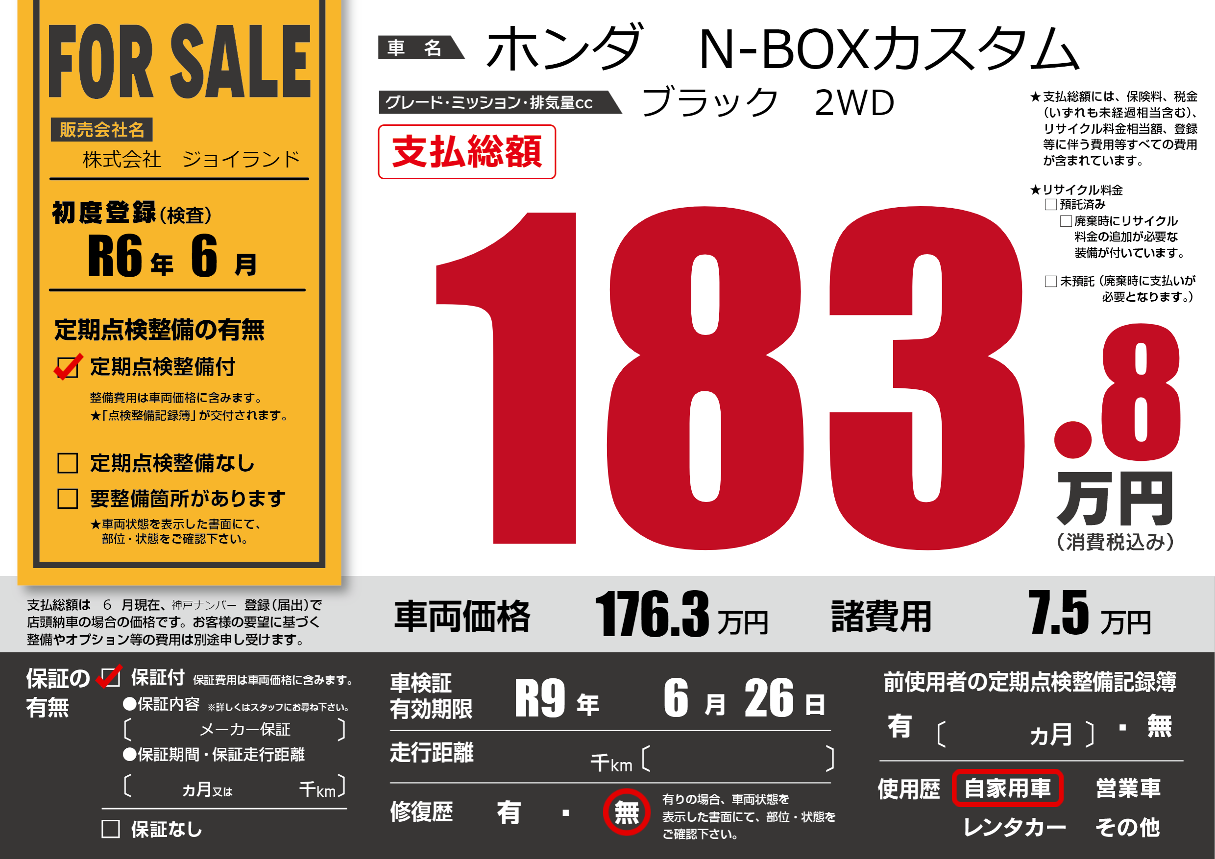 | 走行キロ | - | 初年度登録 | R6年6月 |