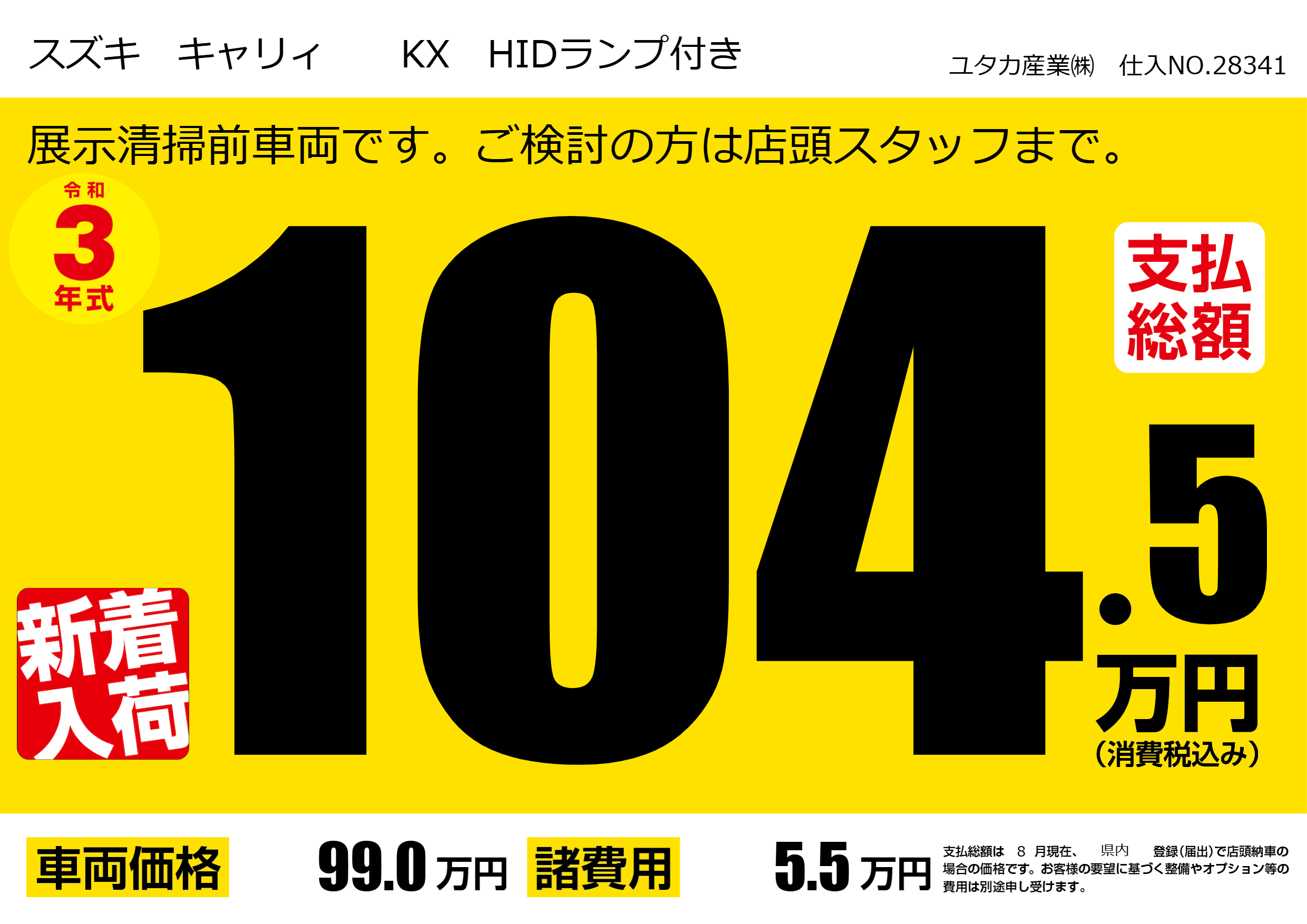 | 車名 | スズキ キャリィ KX HIDランプ付き | グレード ミッション 排気量 |