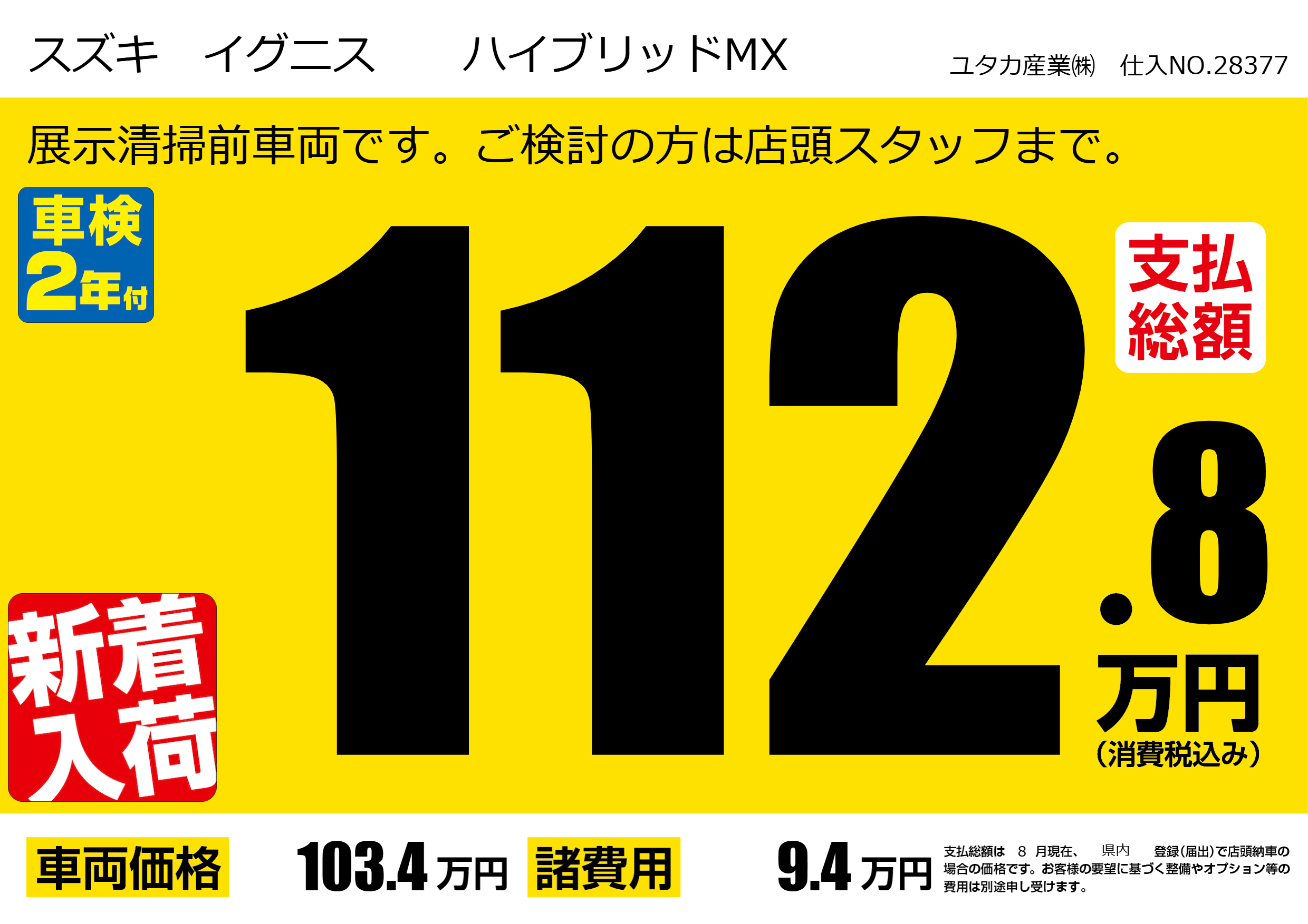| 車名 | スズキ イグニス ハイブリッドMX | グレード ミッション 排気量 |