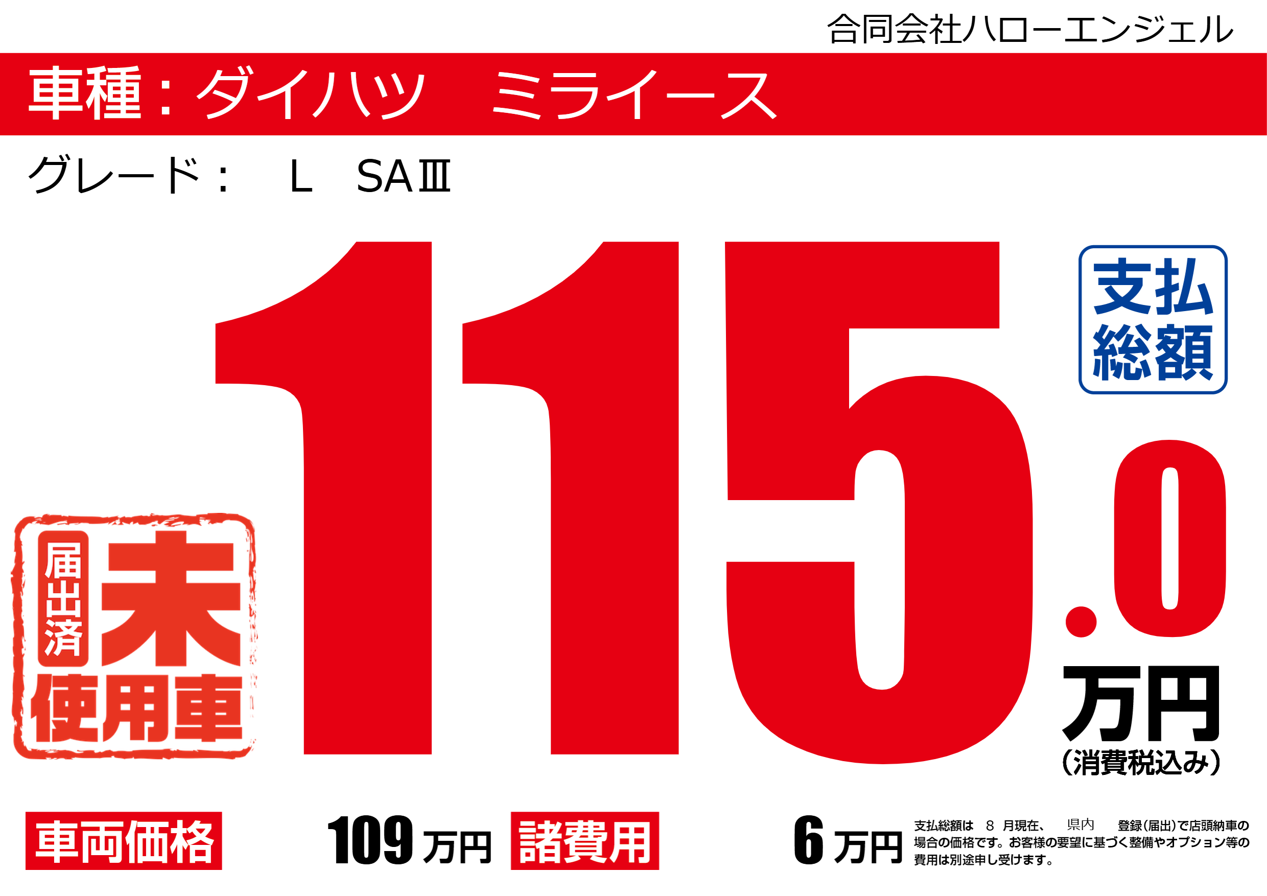 | 車名 | ダイハツ ミライース | グレード ミッション 排気量 |