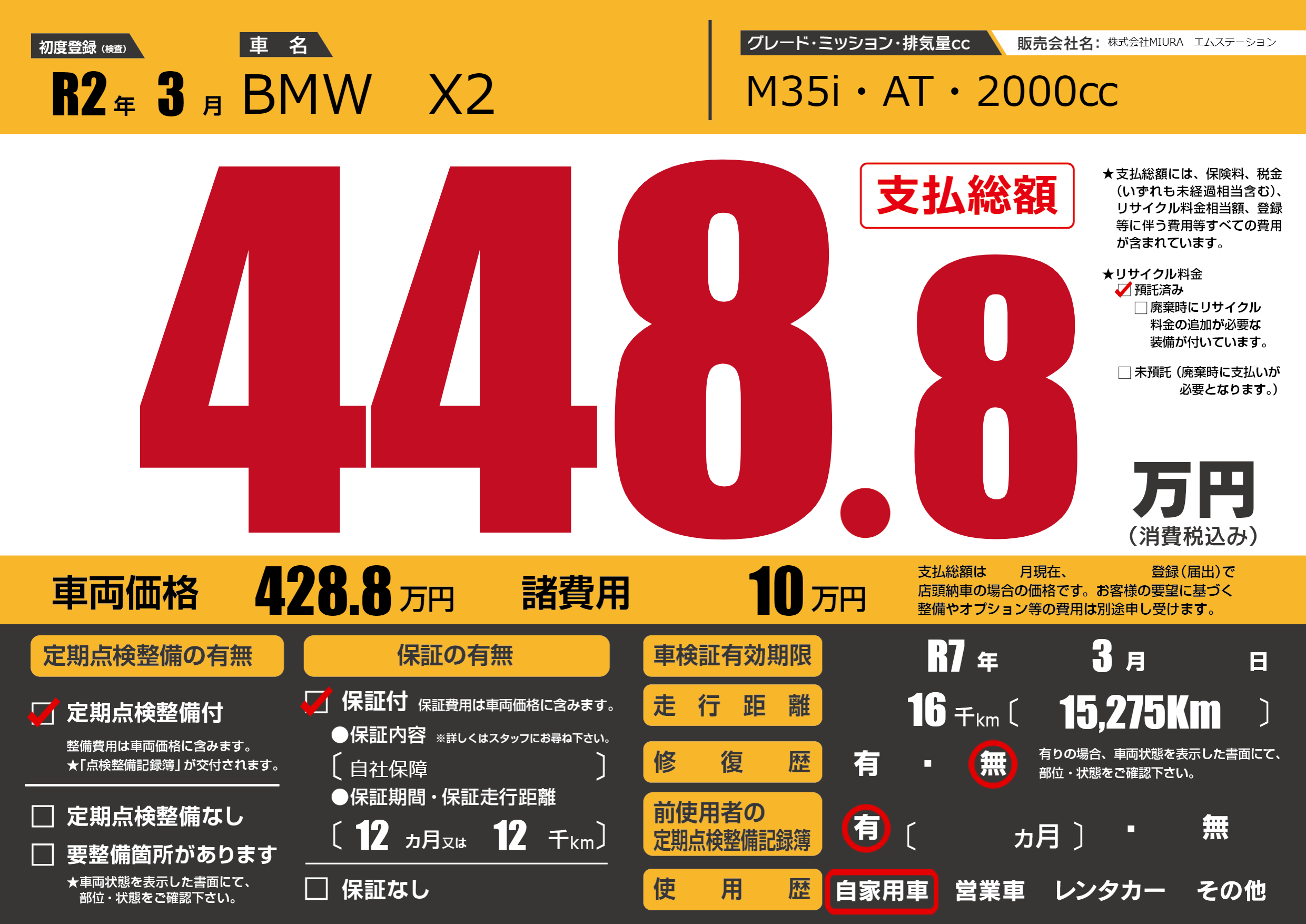 | 車検制限 | R7年 3月 - 日 | ||