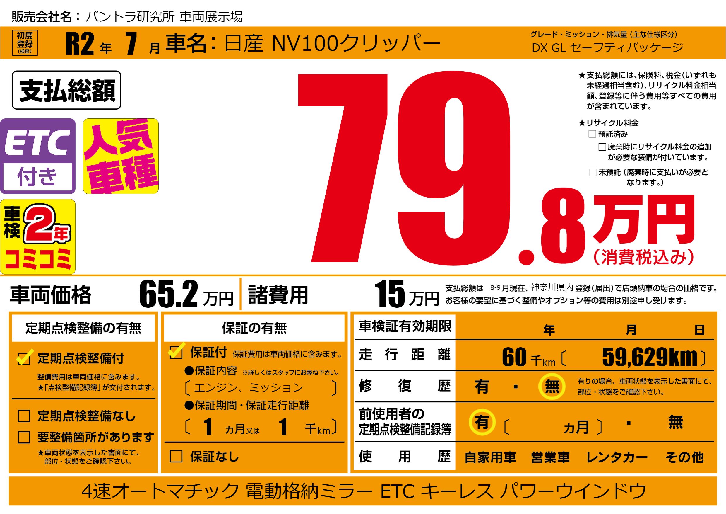 | 定期点検整備 | 定期点検整備あり | ||