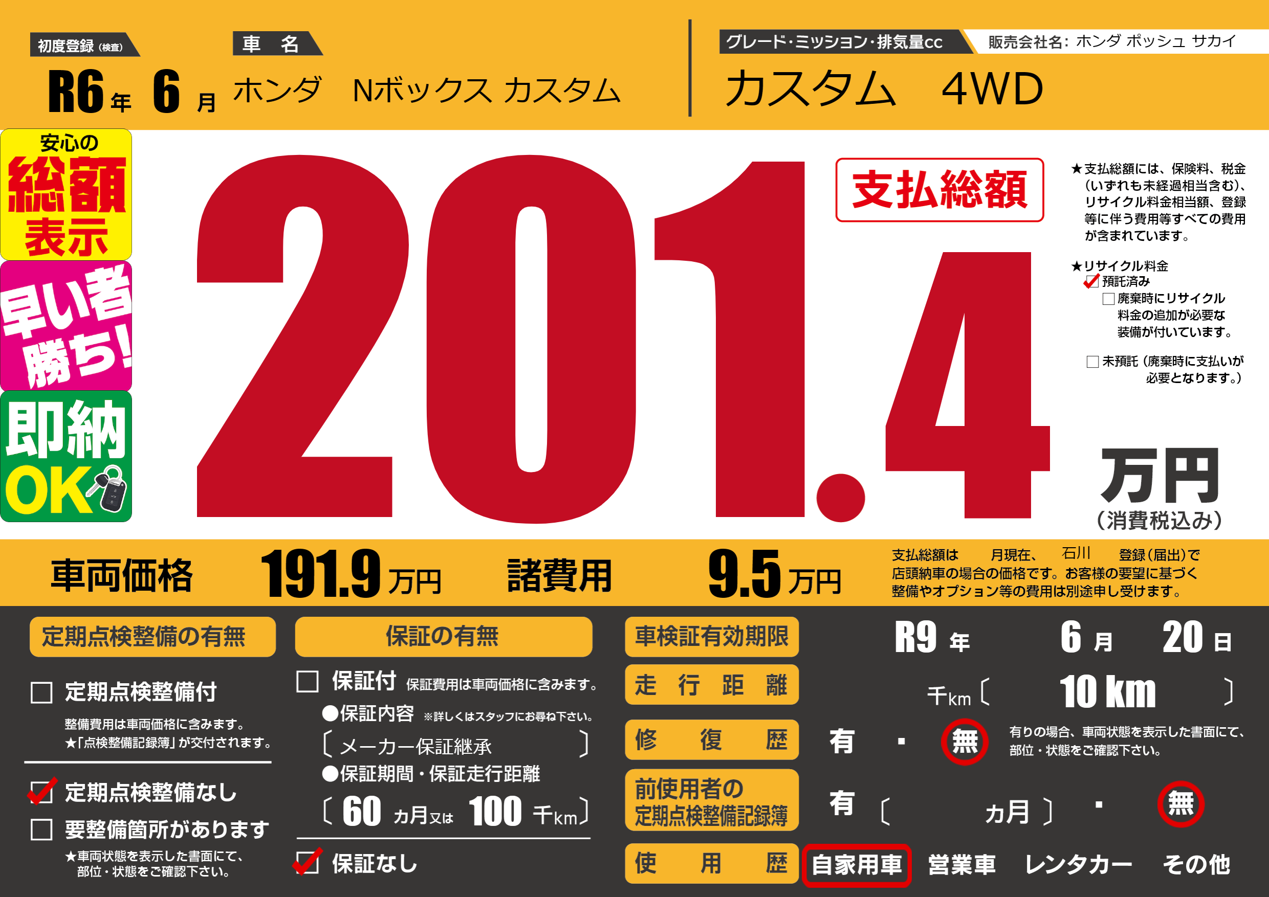 | 走行キロ | - | 初年度登録 | R6年6月 |