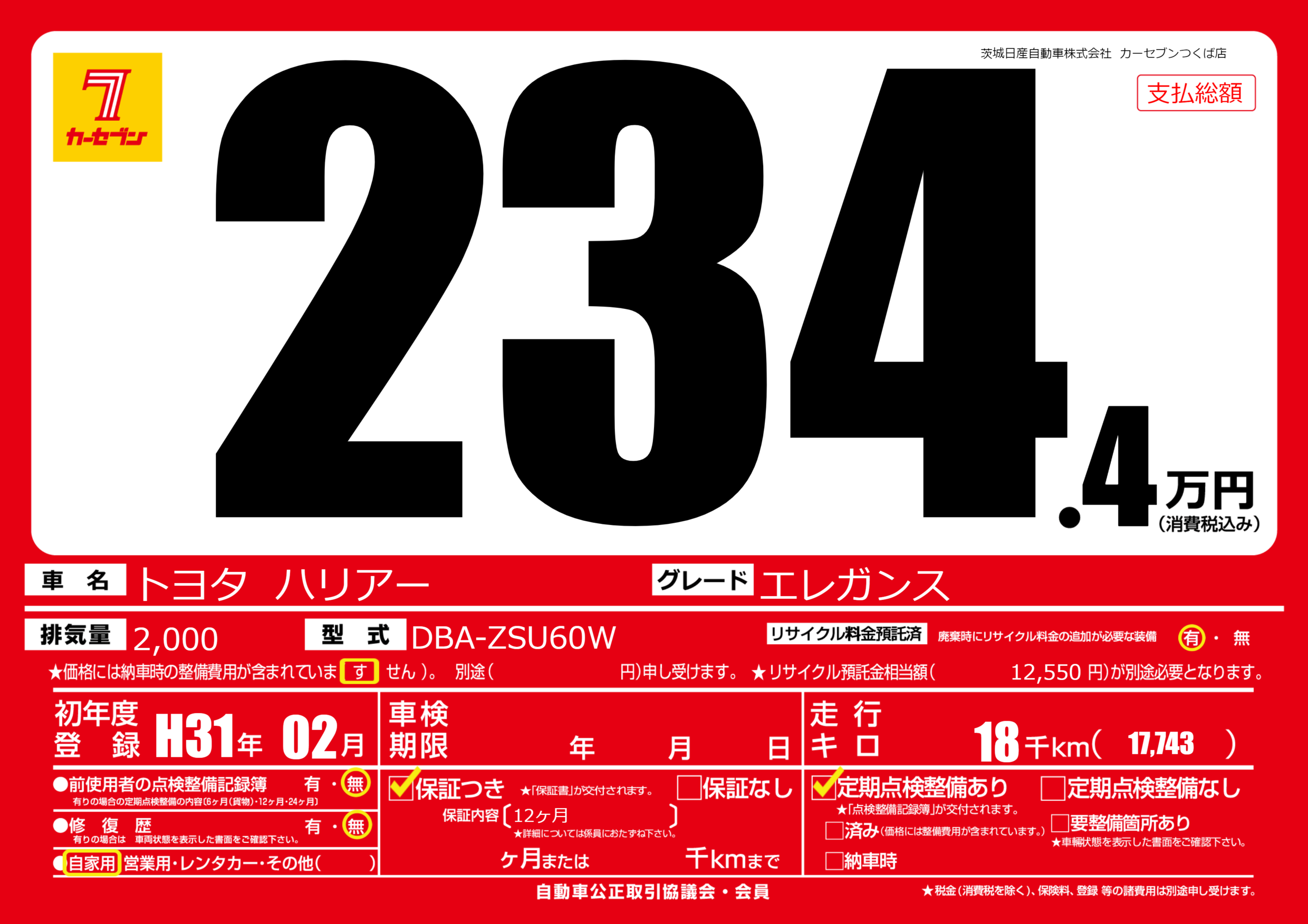 保証付き 保証内容(12ヶ月) ---ヶ月または()千kmまで |