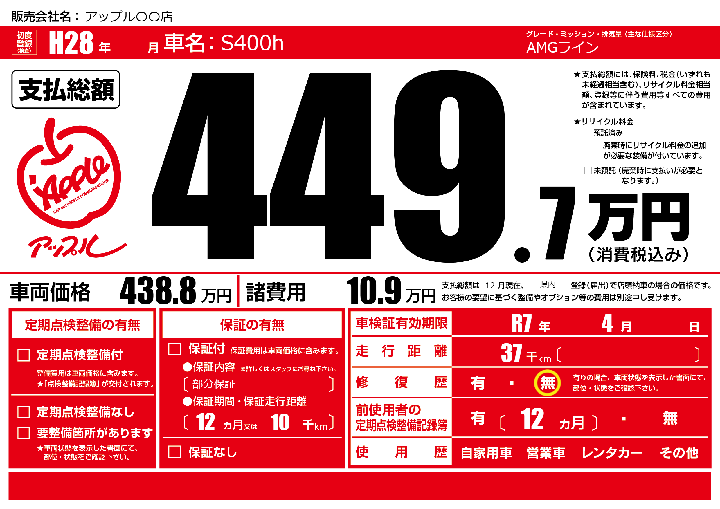 なし | 車検制限 | R7年4月---月 |