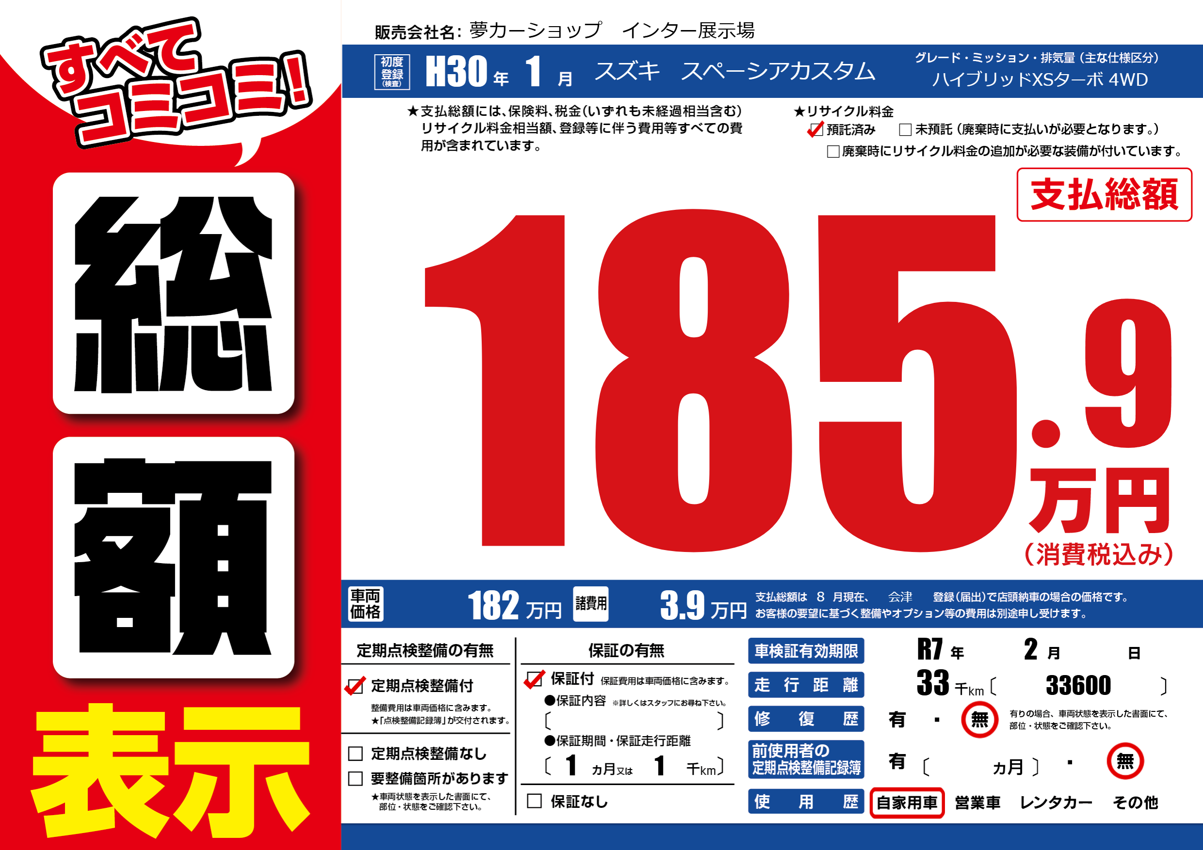 | 車検制限 | R7年 2月 - 日 | ||