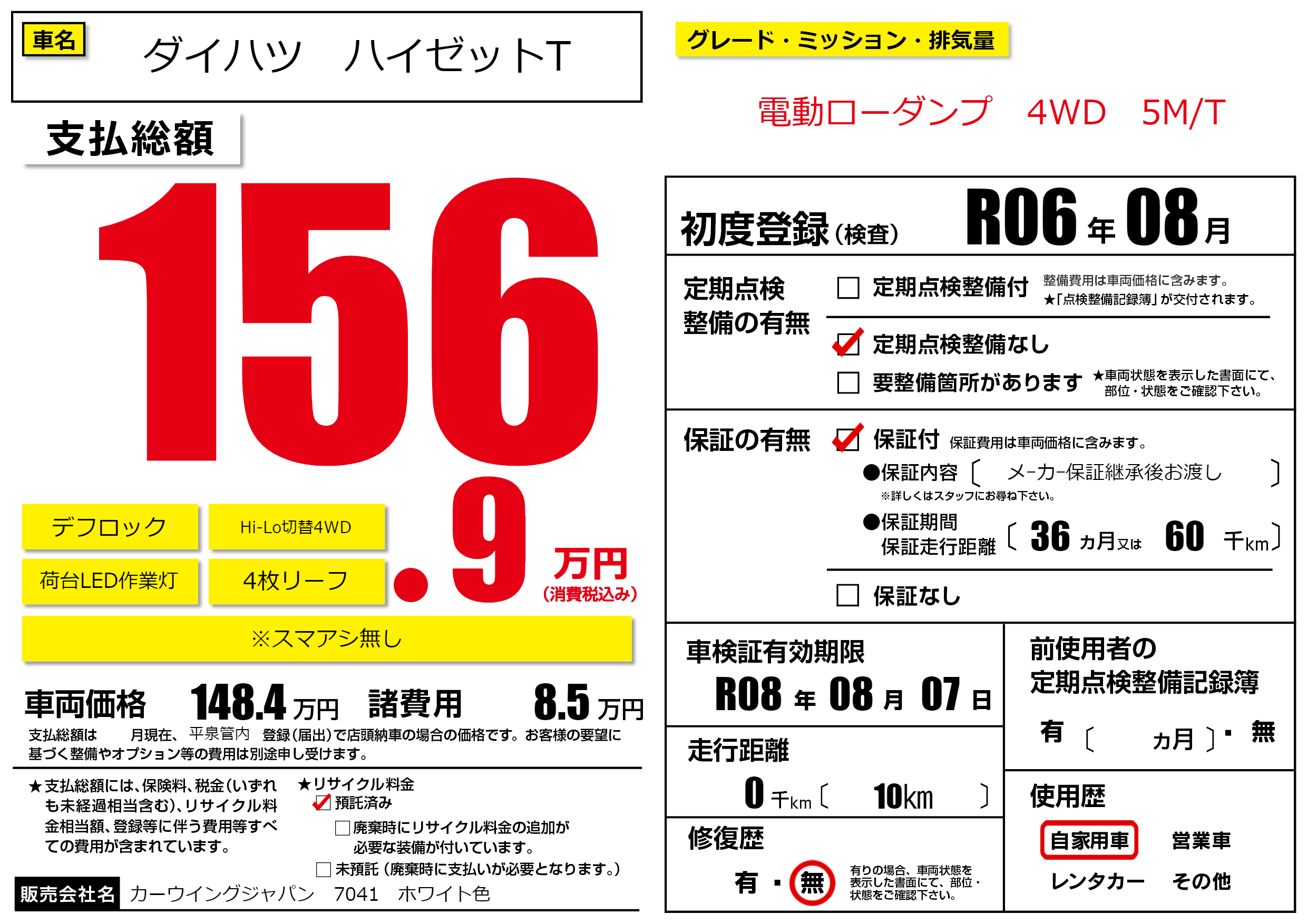 | 走行キロ | - | 初年度登録 | R06年08月 |
