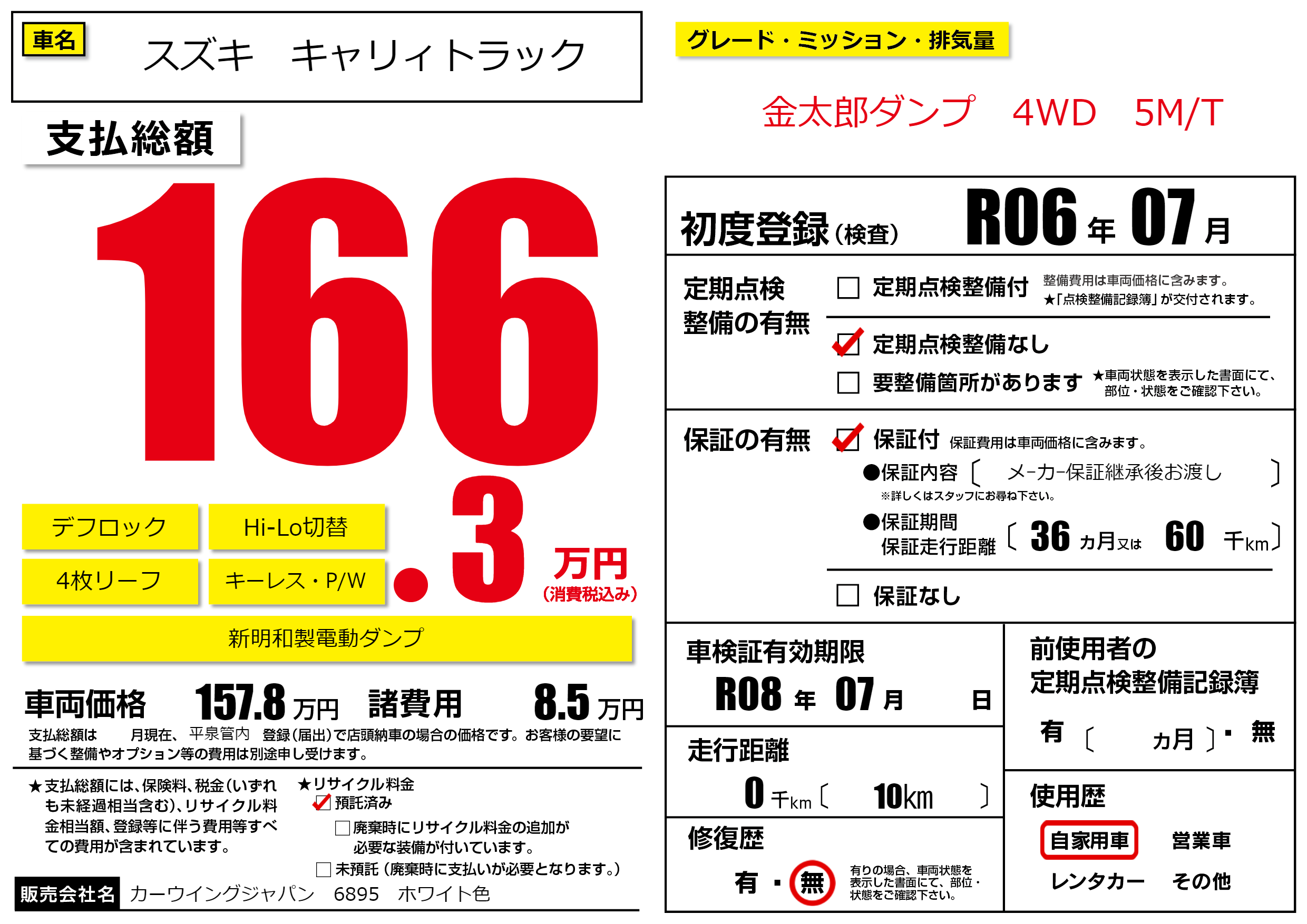 | 走行キロ | - | 初年度登録 | R06年07月 |