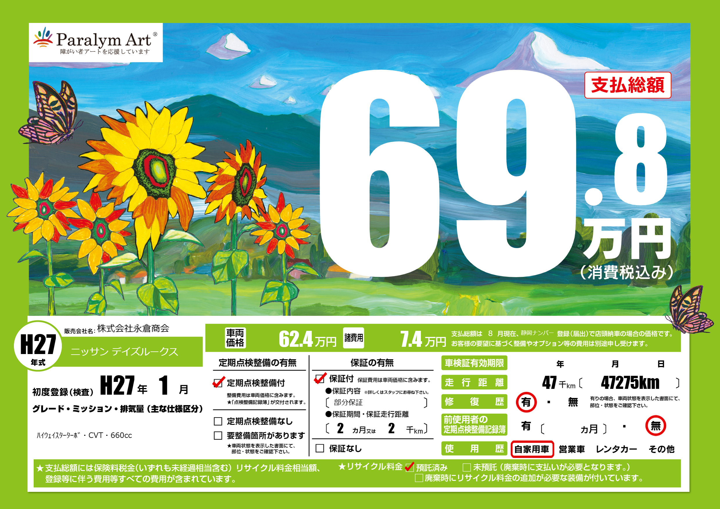 | 車名 | ニッサン デイズルークス | グレード ミッション 排気量 |