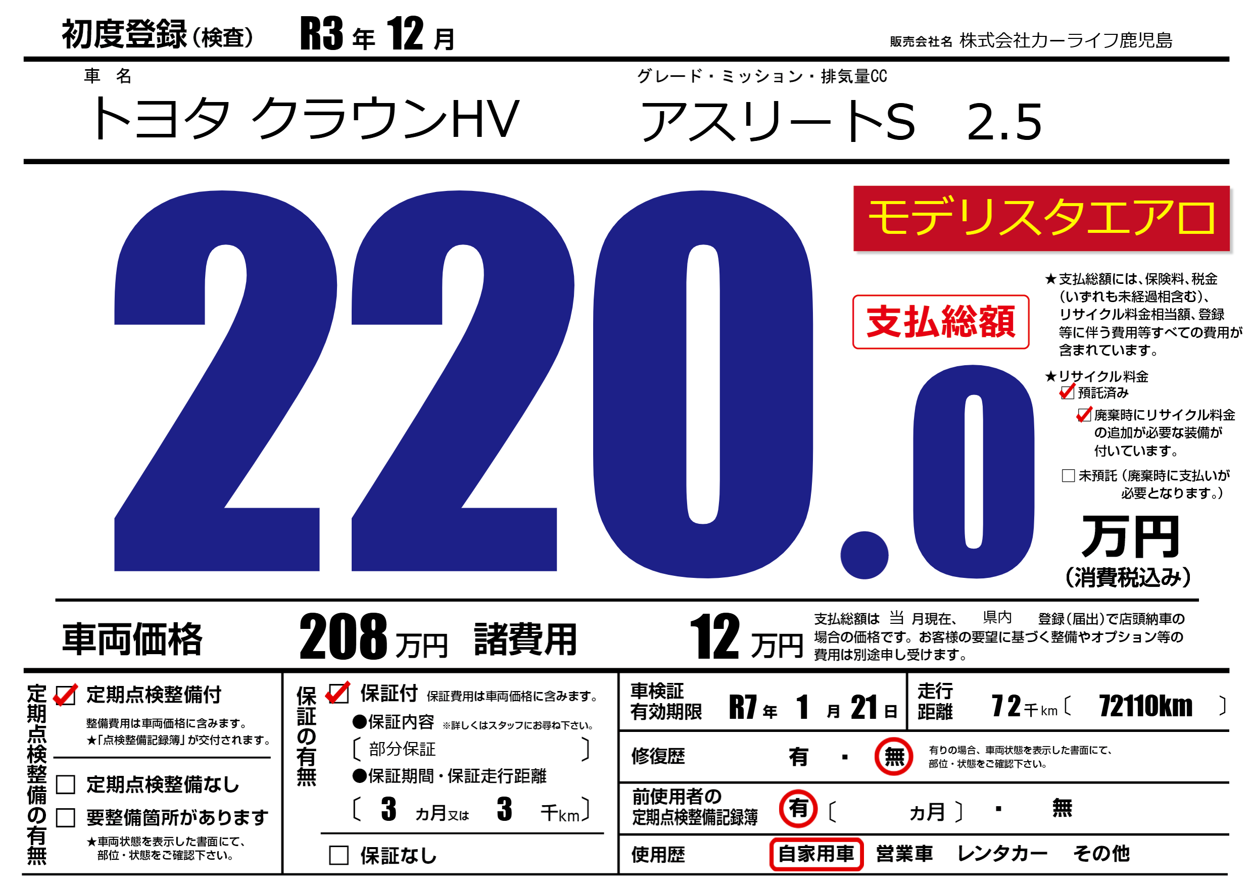 なし | 車検制限 | R7年1月21月 |