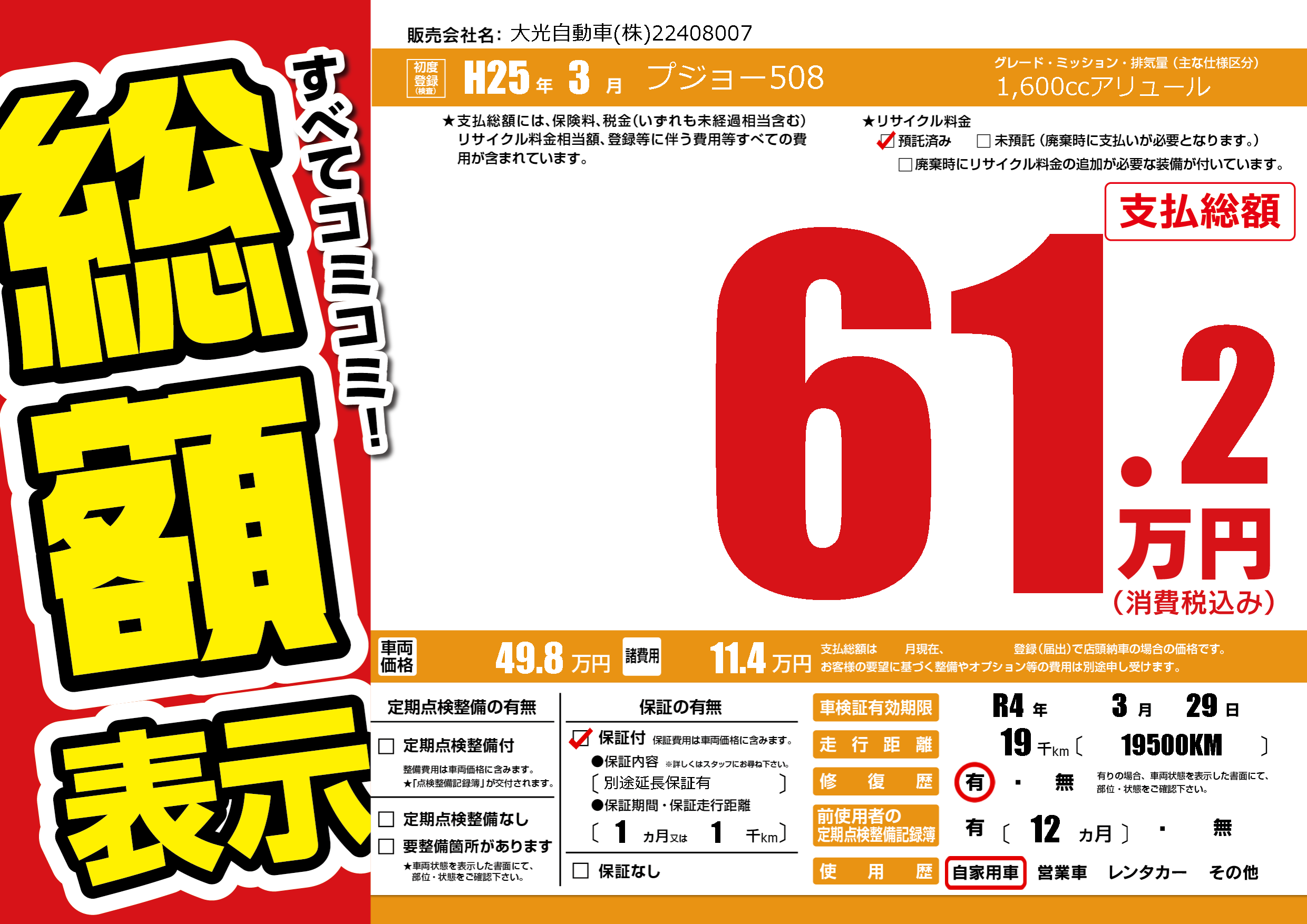なし | 車検制限 | R4年3月29月 |