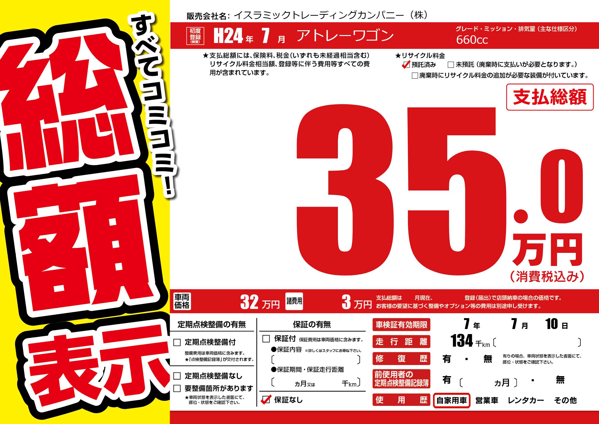 | 車検制限 | 7年 7月 10日 | ||