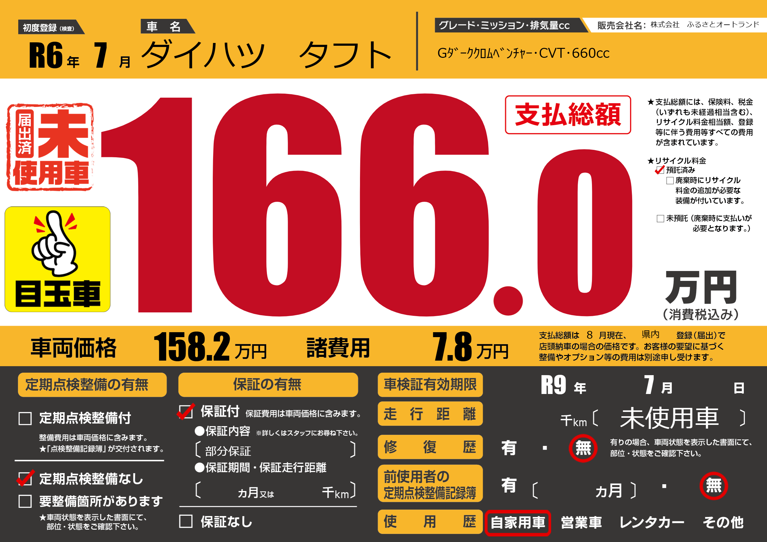 | 車検制限 | R9年 7月 - 日 | ||