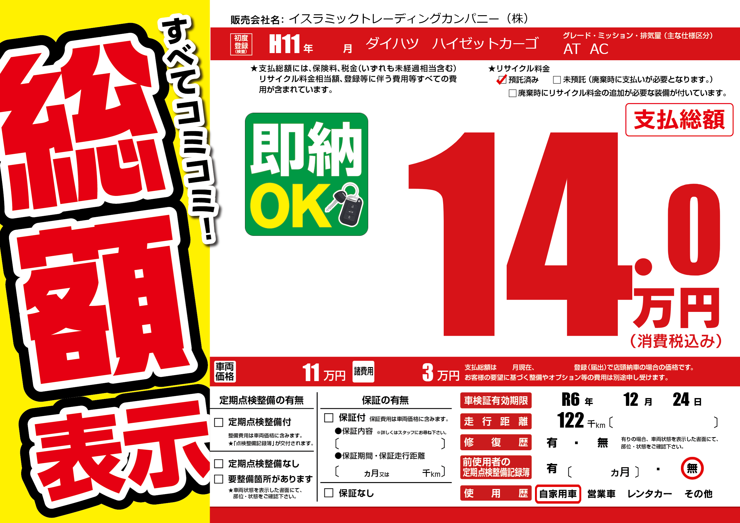 | 車検制限 | R6年 12月 24日 | ||