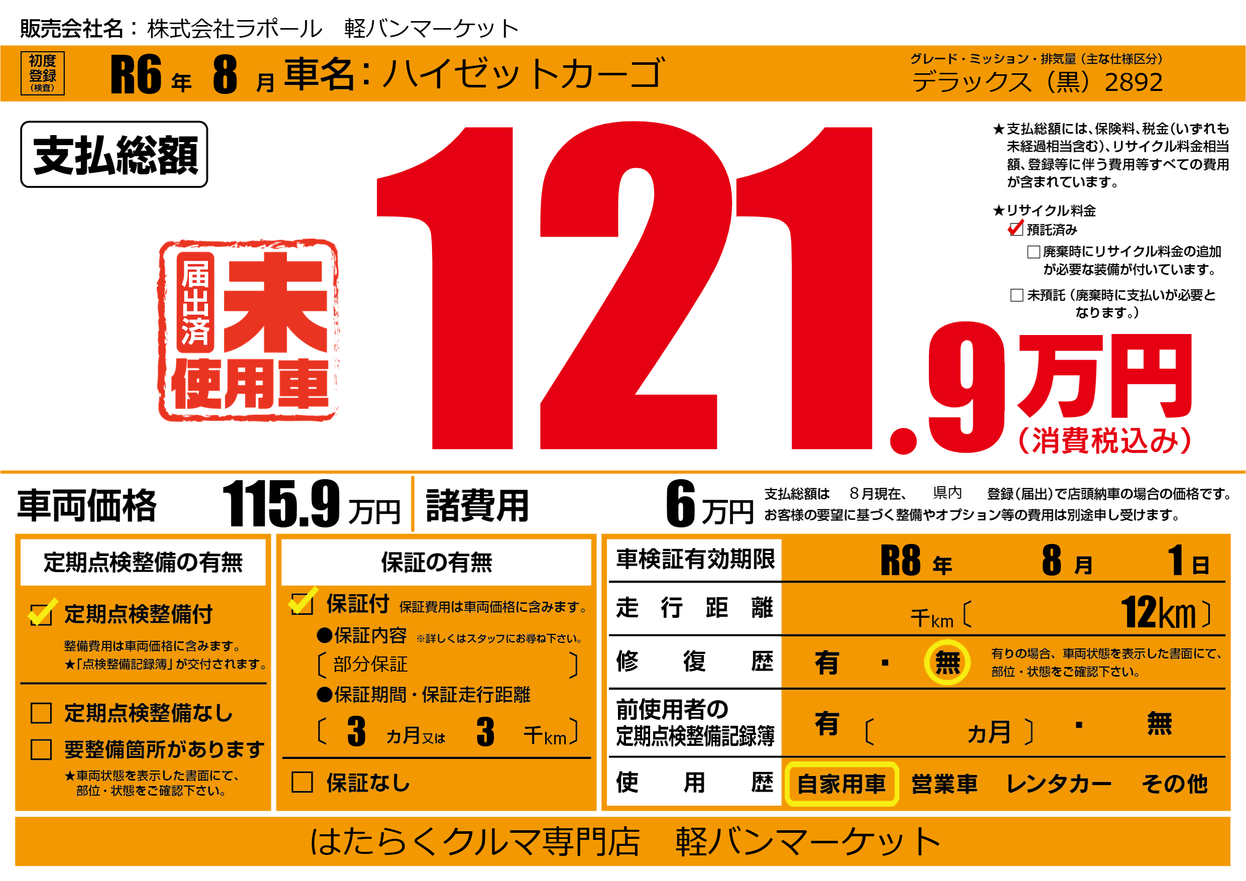 なし | 車検制限 | R8年8月1月 |