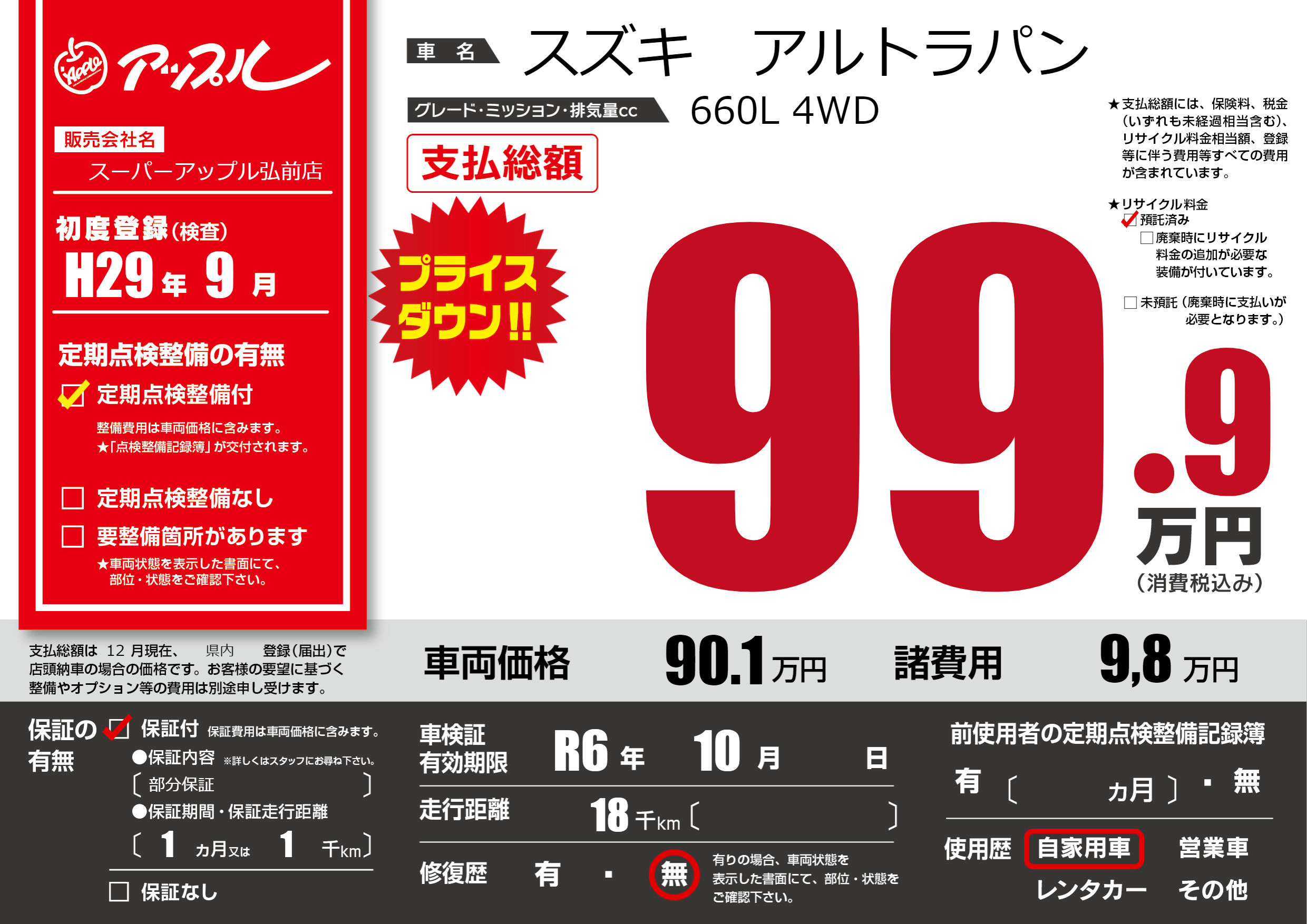 | 走行キロ | 1.8万km | 初年度登録 | H29年9月 |