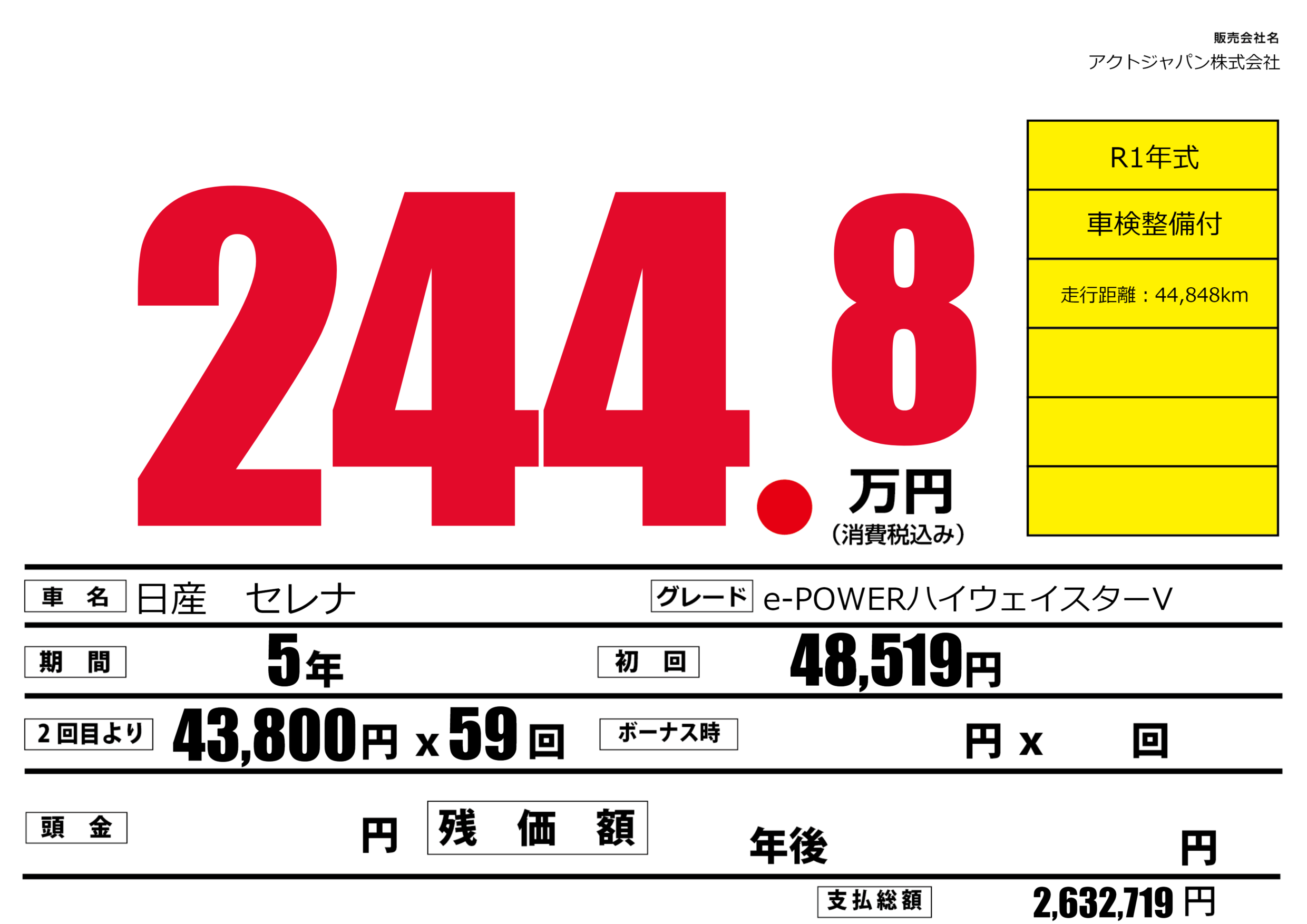 | 車名 | 日産 セレナ | グレード ミッション 排気量 |