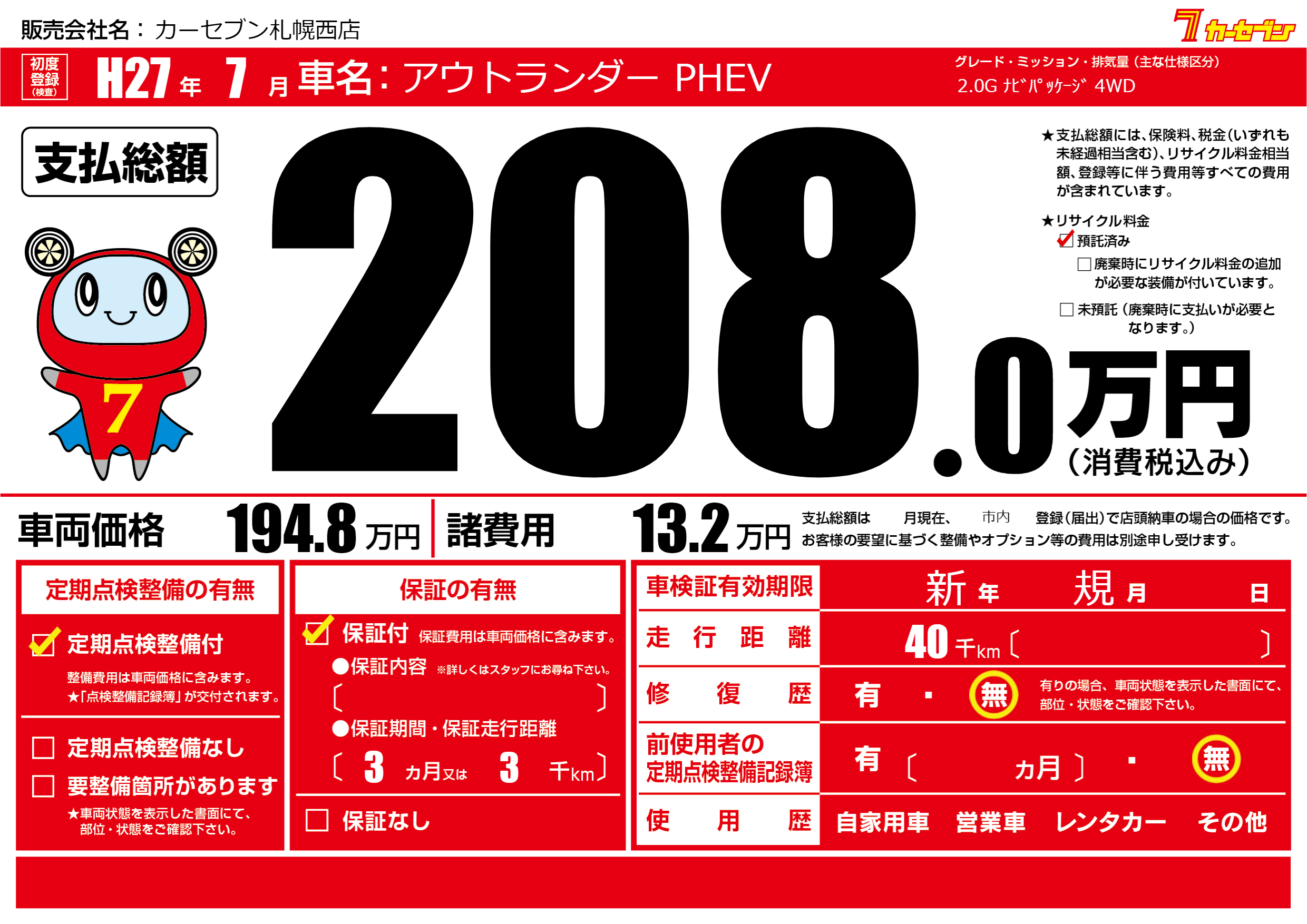 | 走行キロ | 4万km | ||