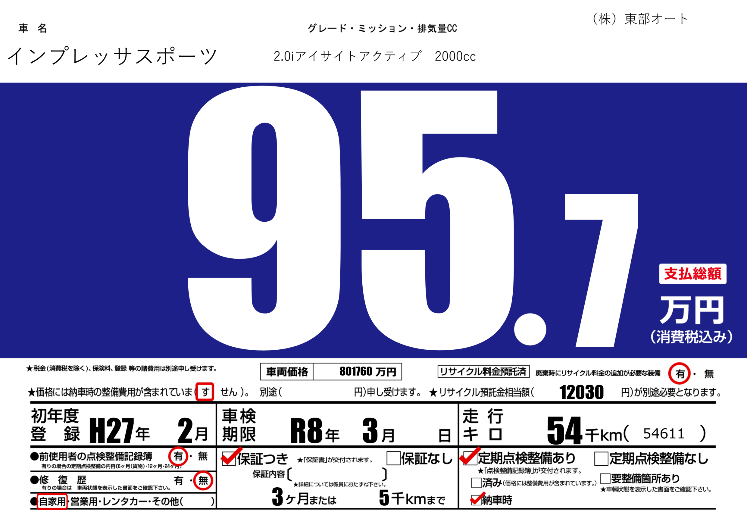 | 車検制限 | R8年 3月 - 日 | ||