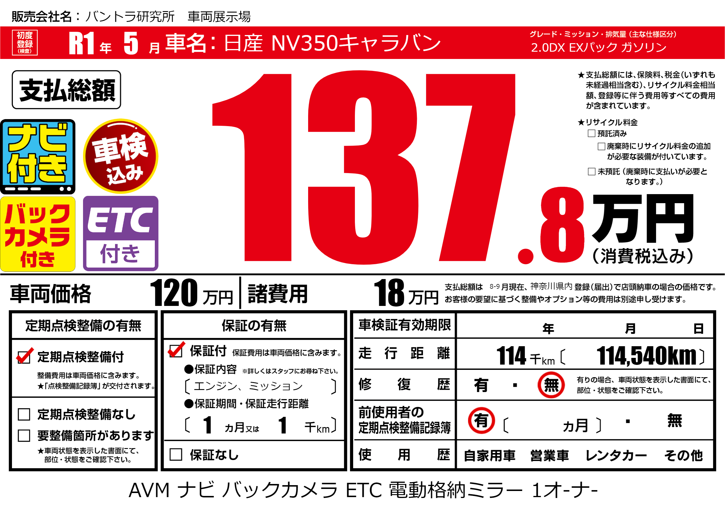 | 定期点検整備 | 定期点検整備あり | ||