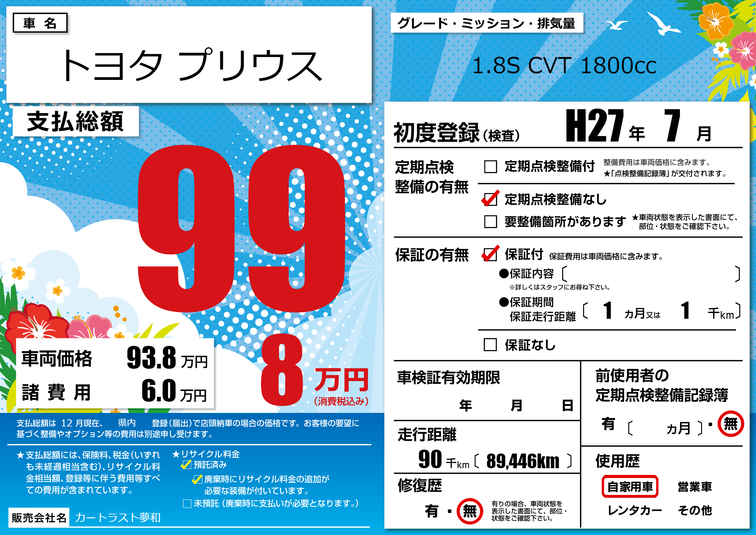 | 走行キロ | 9万km | ||