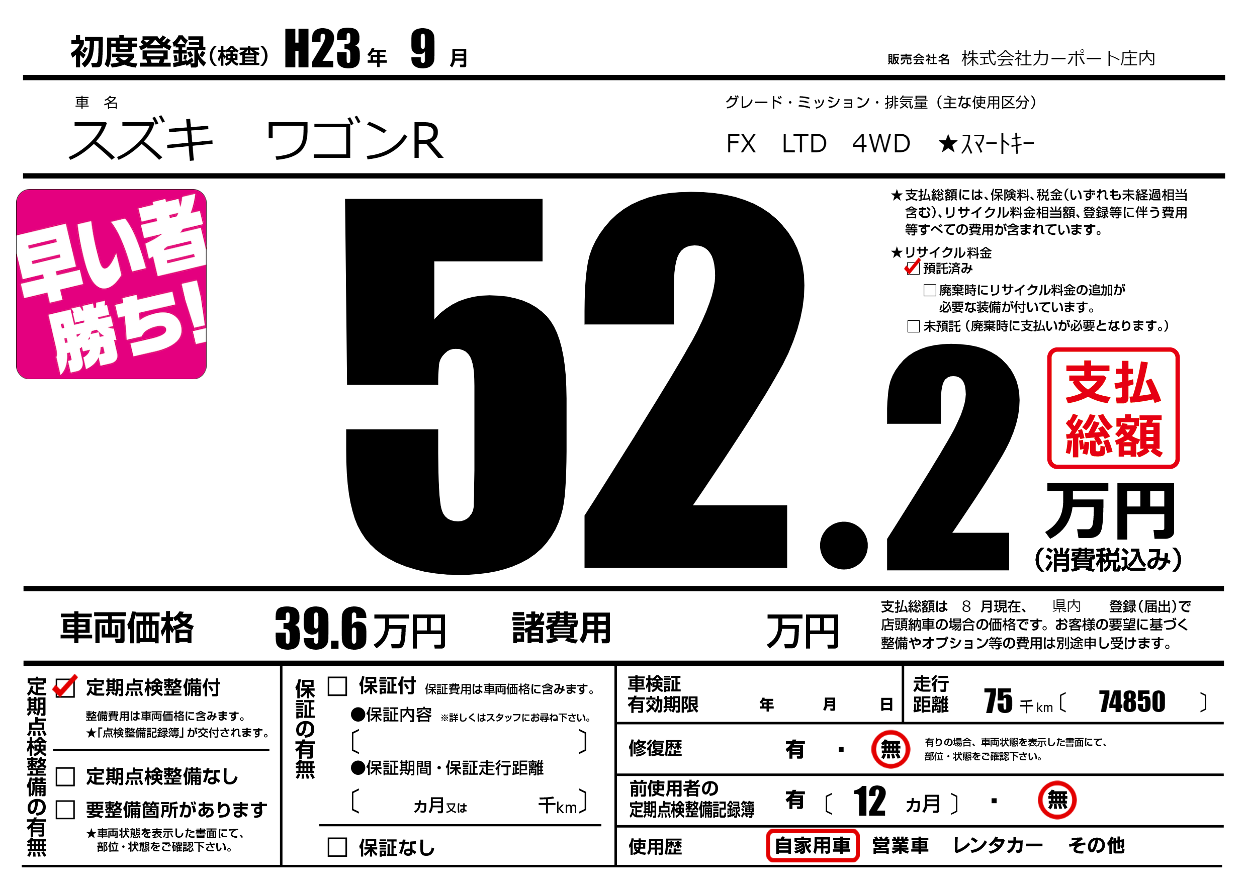| 定期点検整備 | 定期点検整備あり | ||