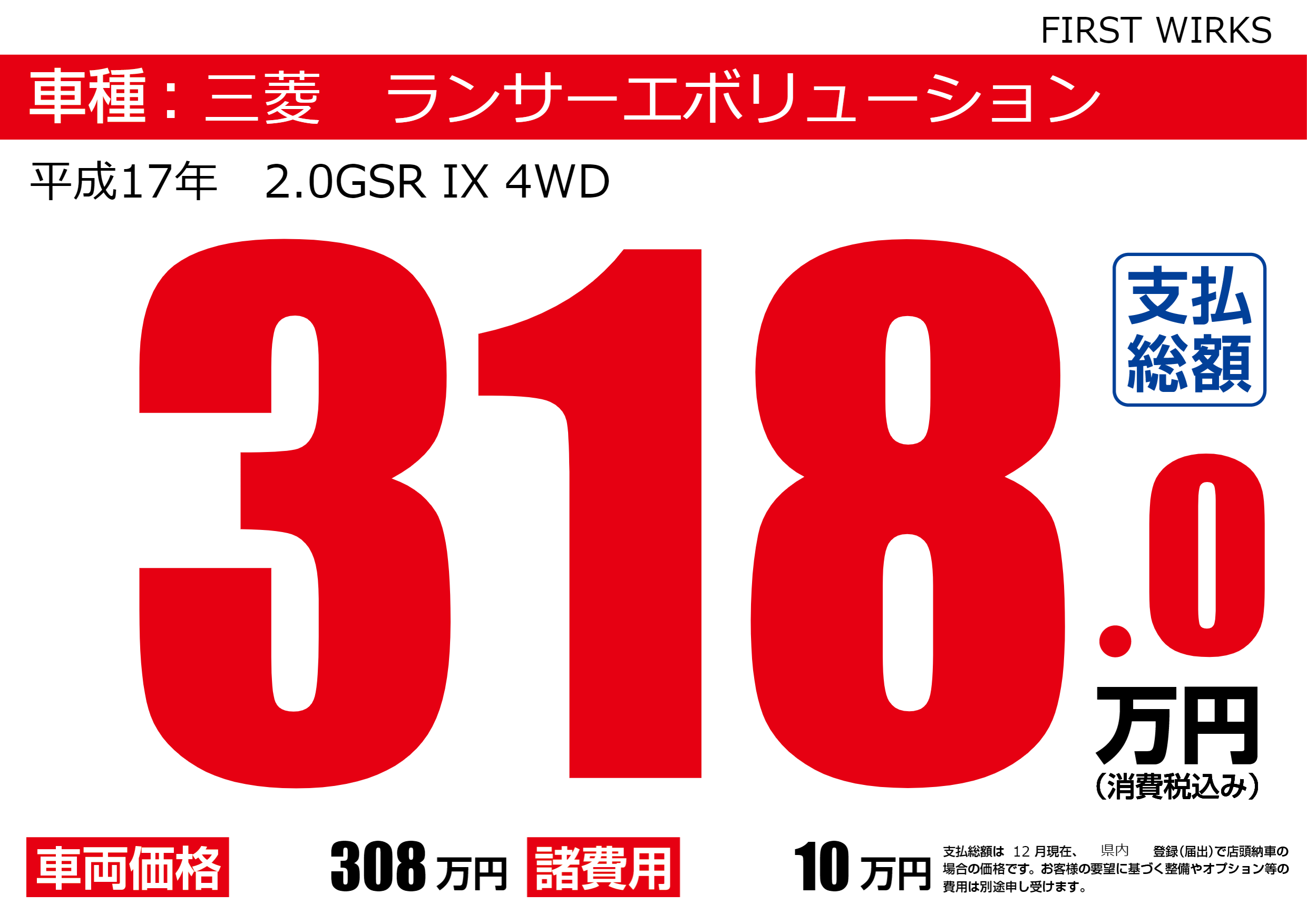 | 車名 | 三菱 ランサーエボリューション | グレード ミッション 排気量 |
