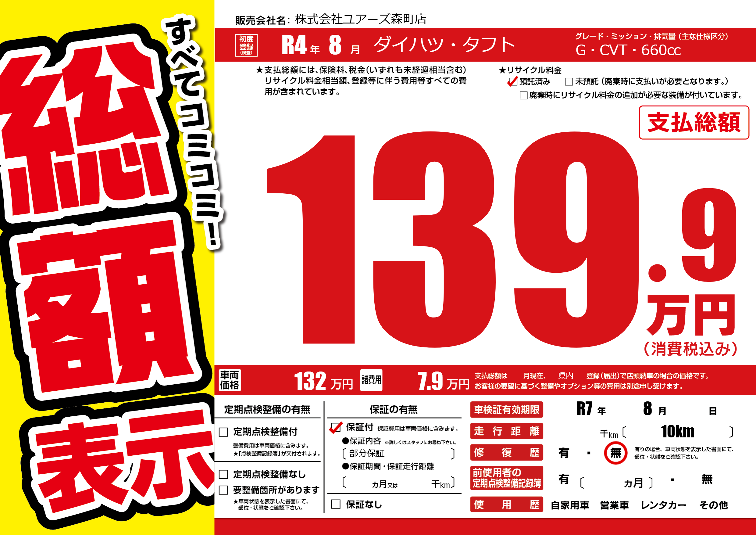 なし | 車検制限 | R7年8月---月 |
