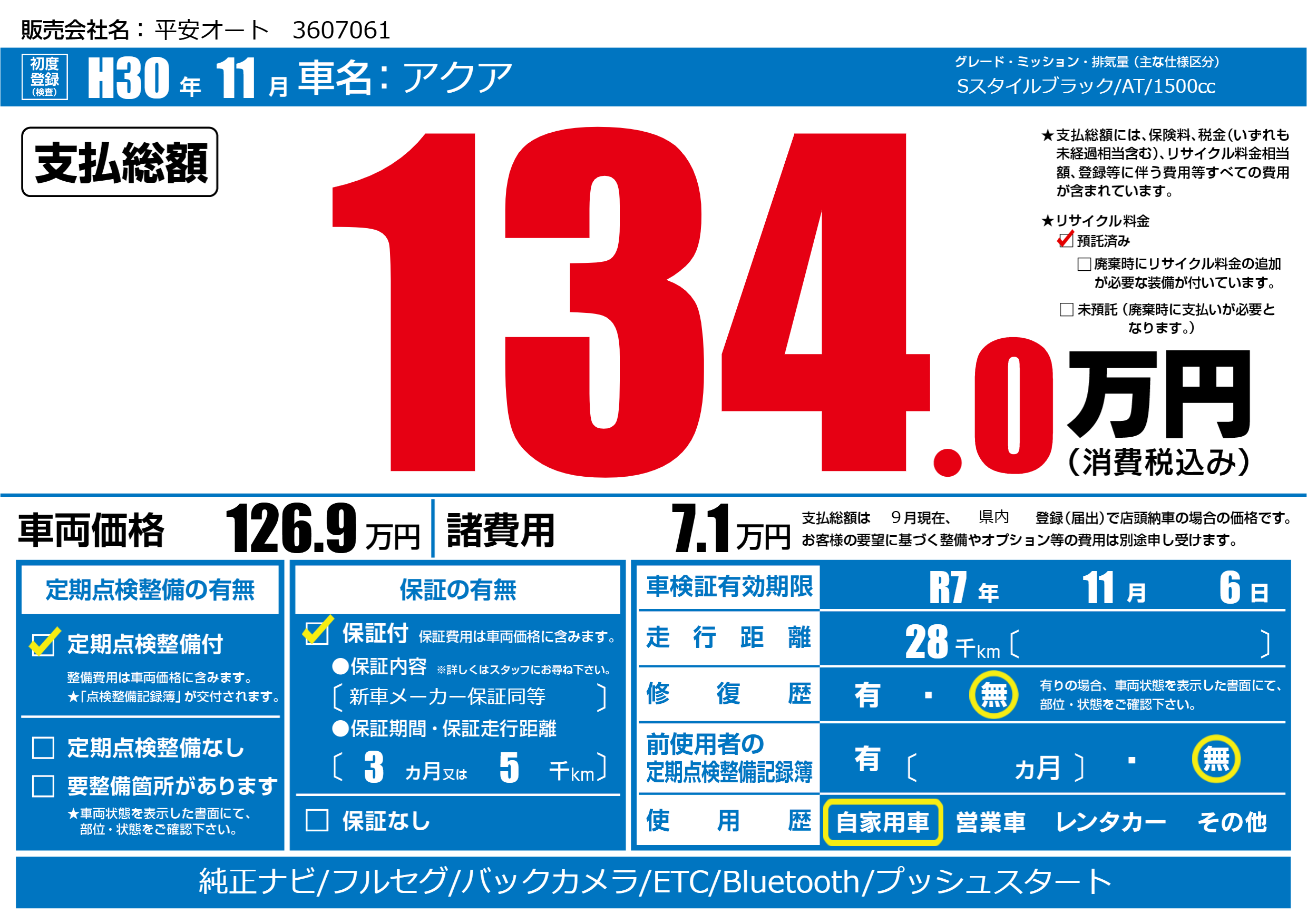 なし | 車検制限 | R7年11月6月 |