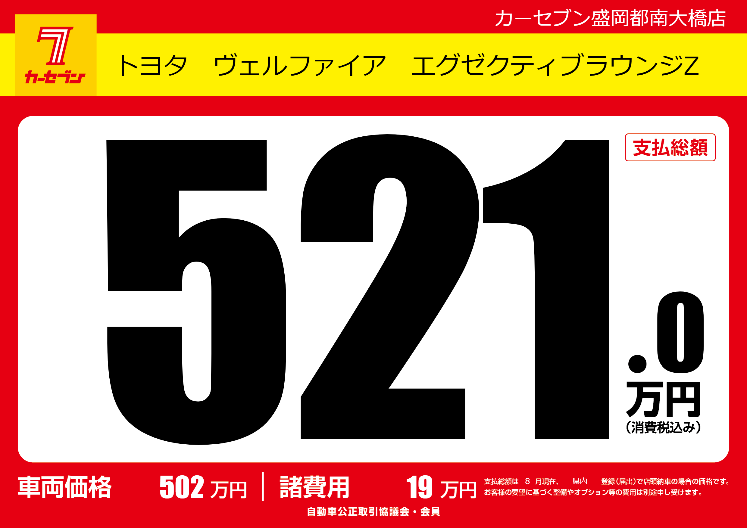 | 車名 | トヨタ ヴェルファイア エグゼクティブラウンジZ | グレード ミッション 排気量 |