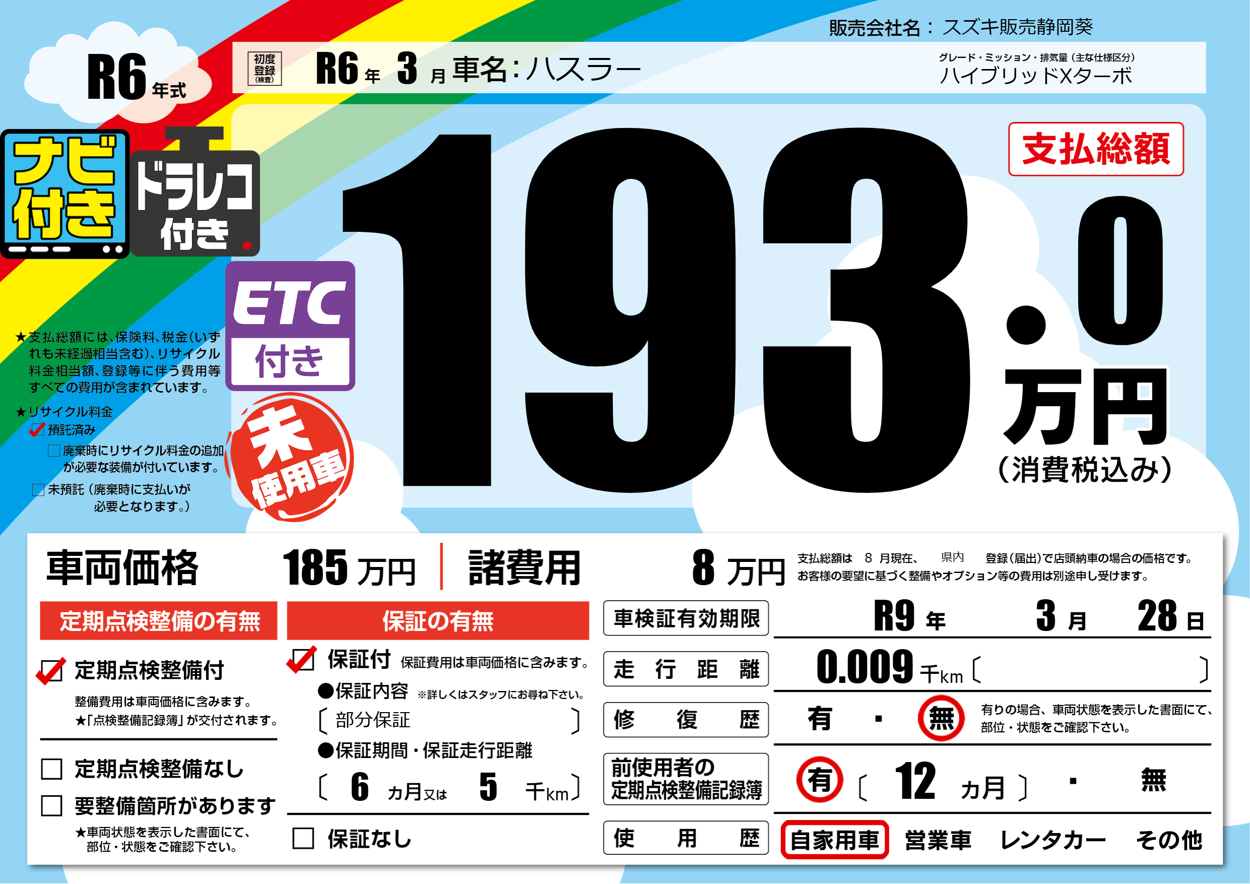 | 車名 | ハスラー | グレード ミッション 排気量 |