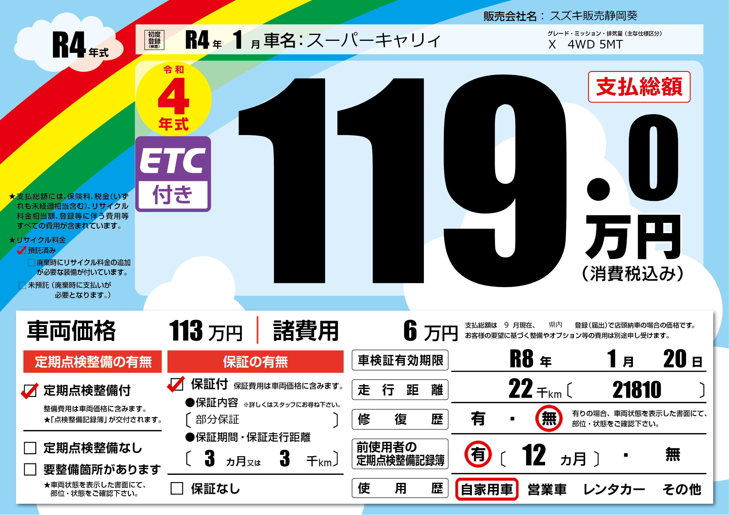 | 車名 | スーパーキャリィ | グレード ミッション 排気量 |