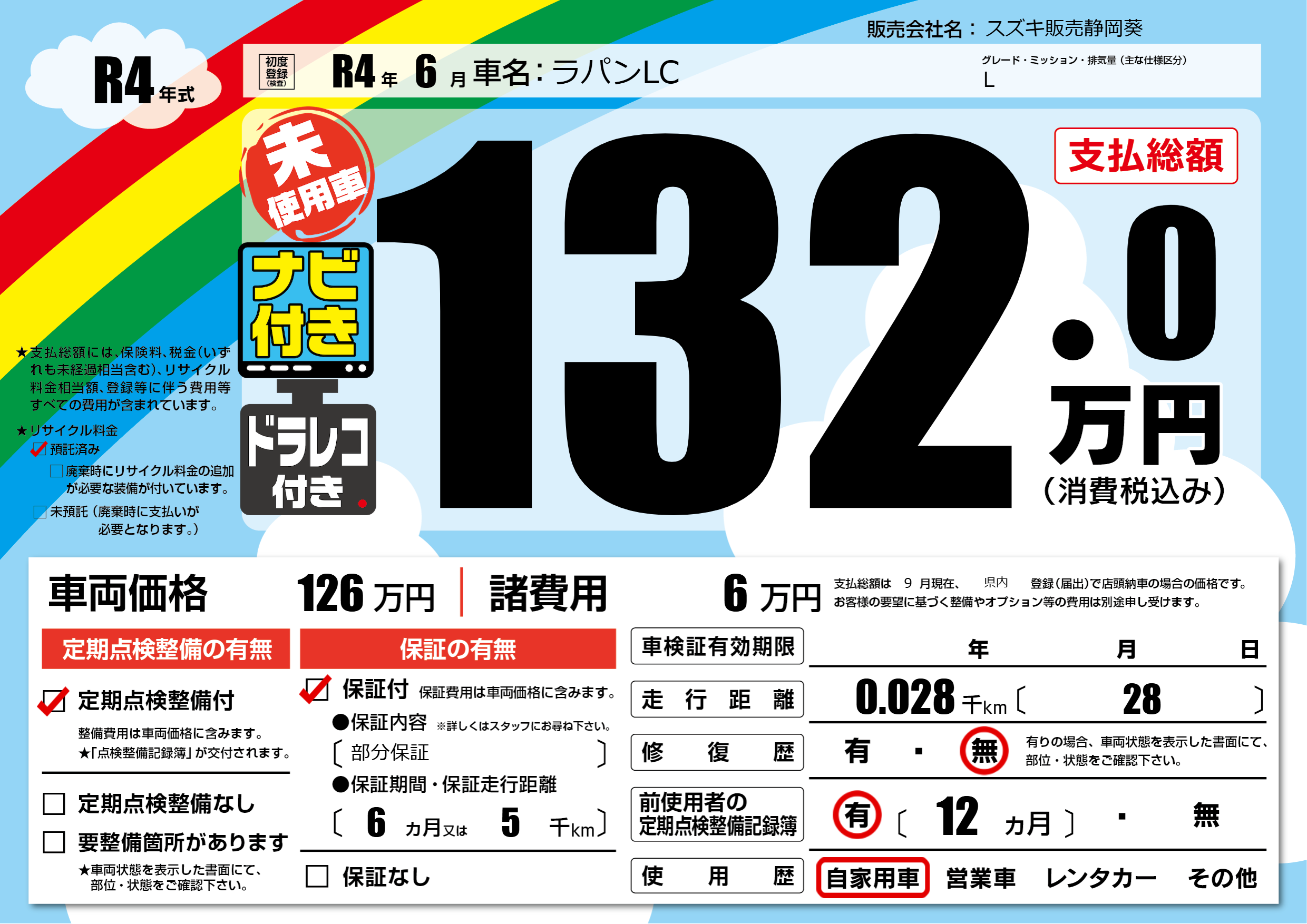 | 車名 | ラパンLC | グレード ミッション 排気量 |