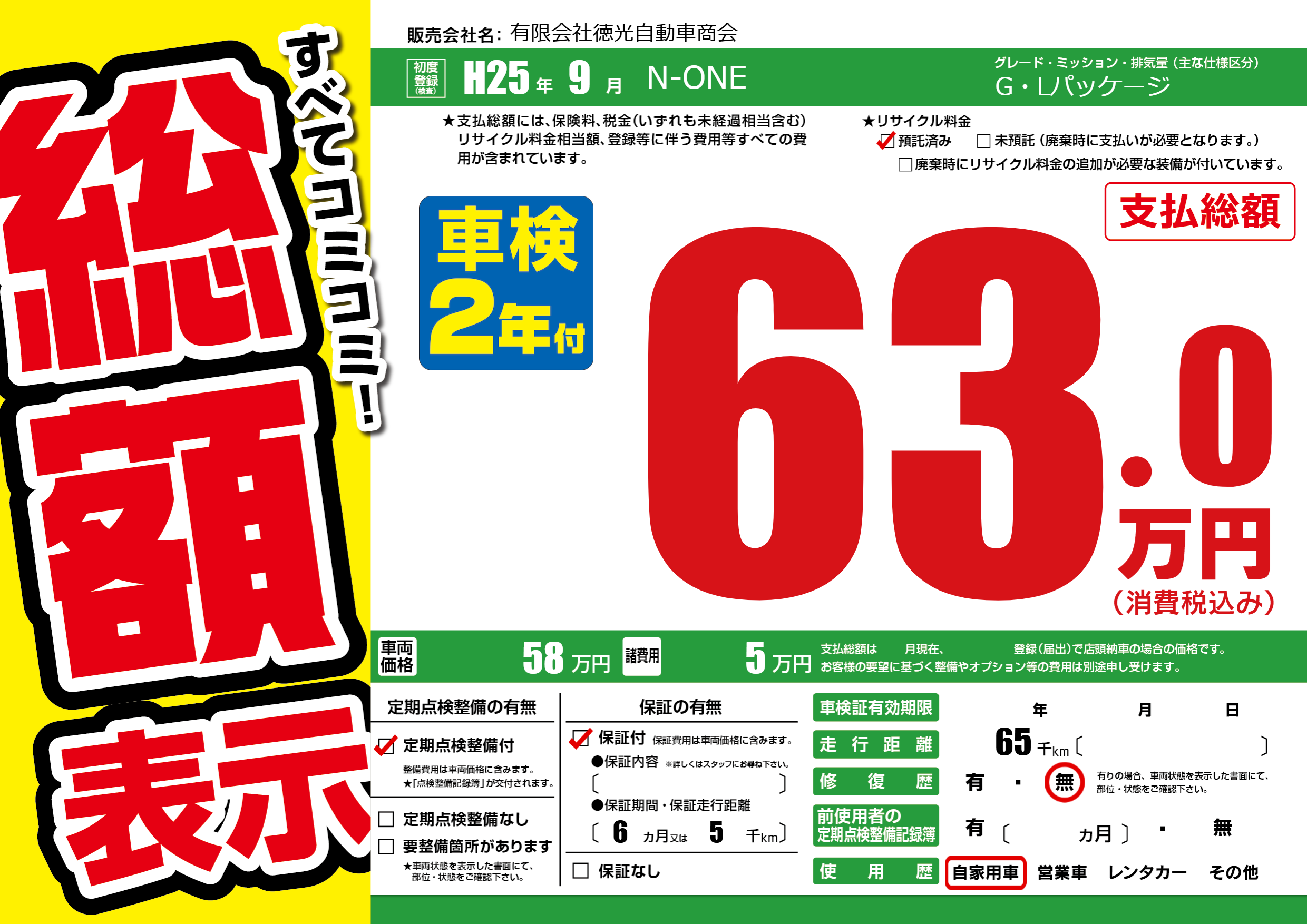 | 車名 | N-ONE | グレード ミッション 排気量 |