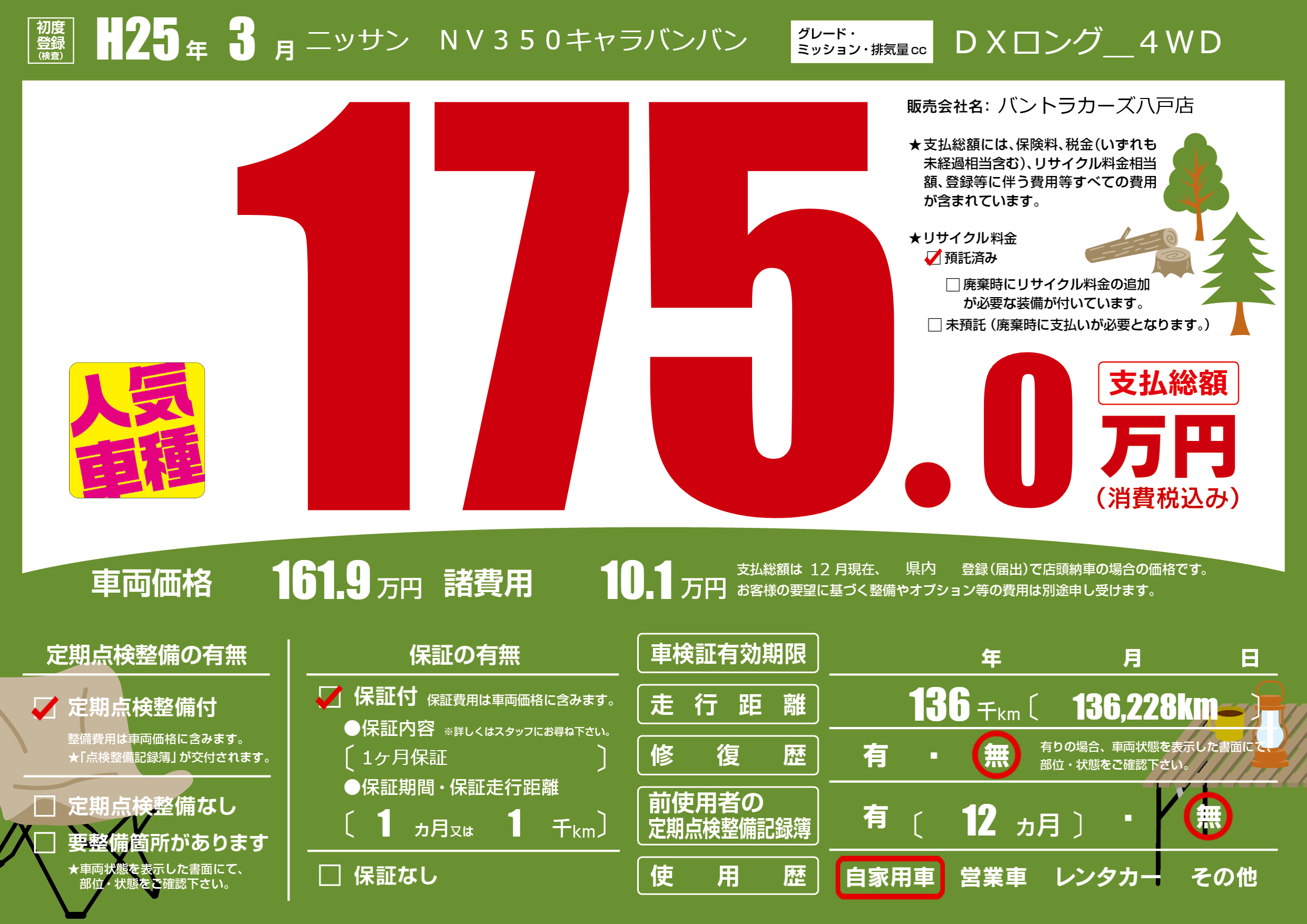 | 定期点検整備 | 定期点検整備あり | ||