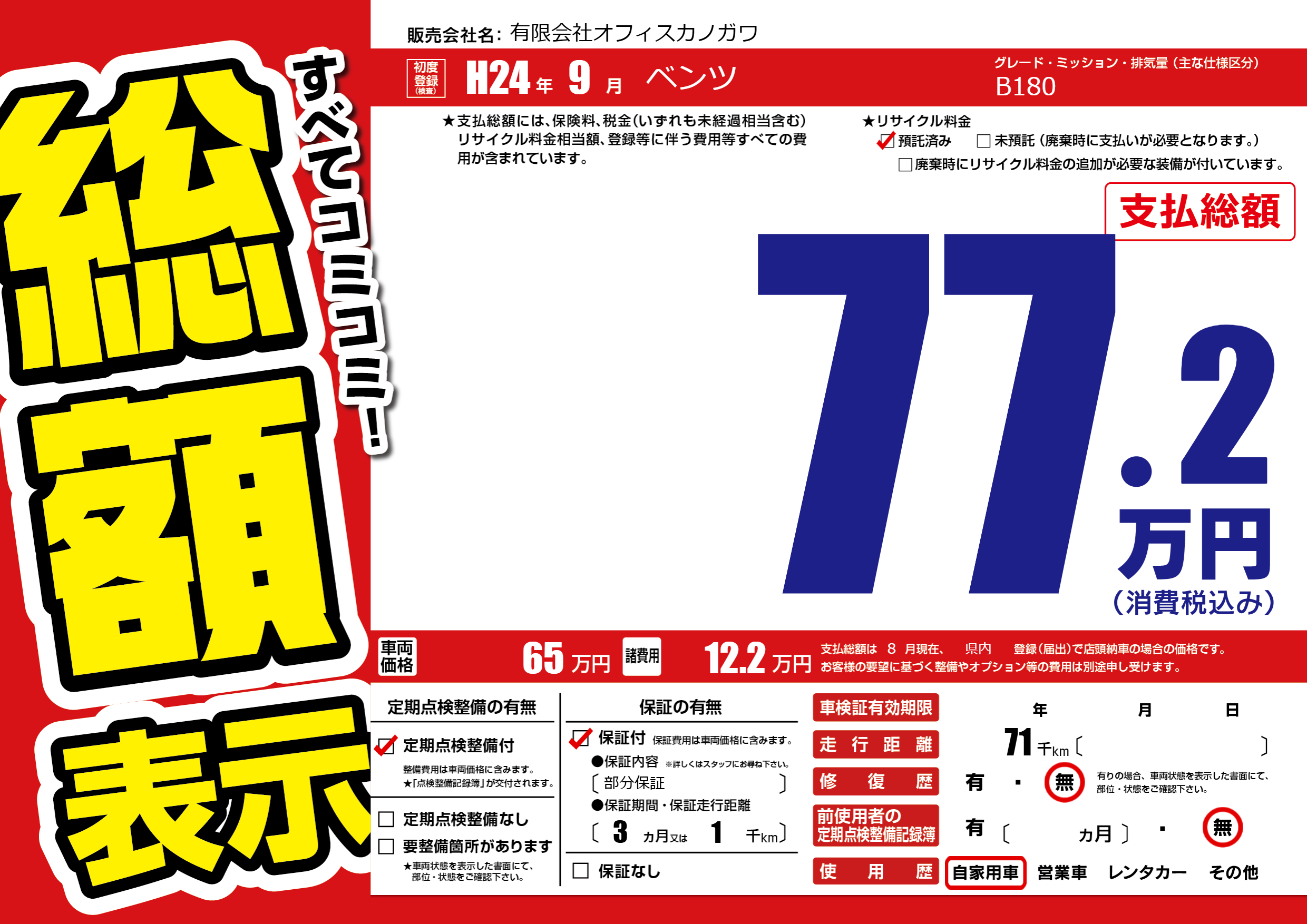 | 車名 | ベンツ | グレード ミッション 排気量 |
