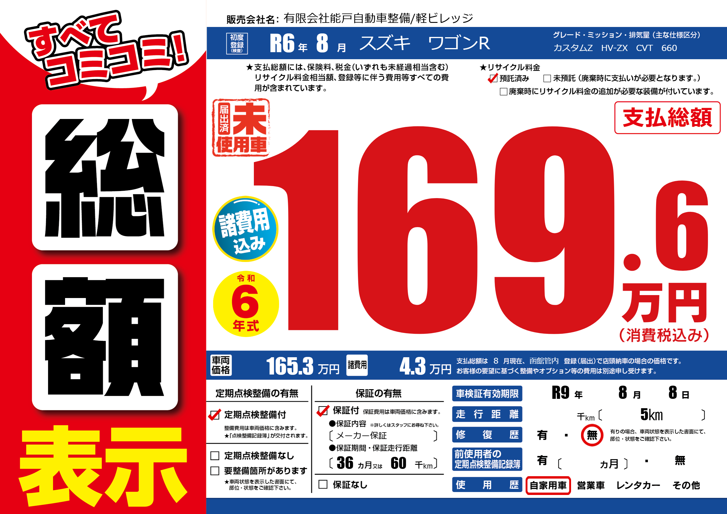 | 車検制限 | R9年 8月 8日 | ||