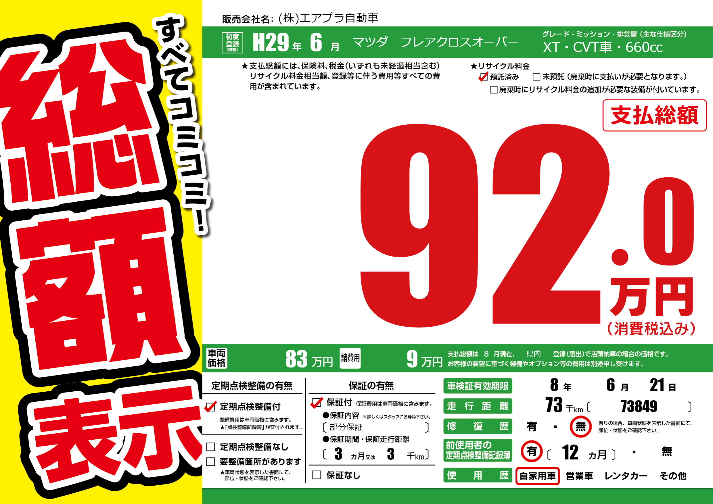 | 定期点検整備 | 定期点検整備あり | ||