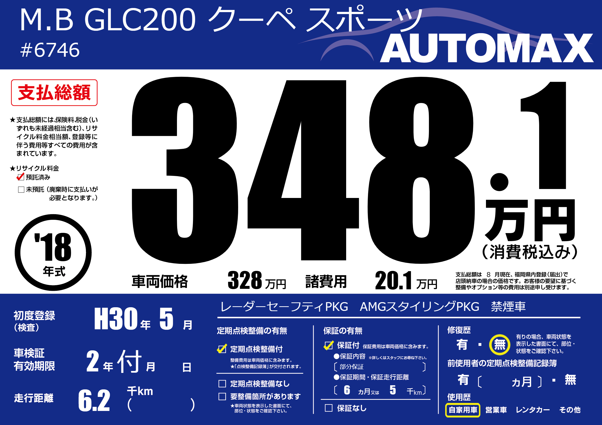 | 車名 | M.B GLC200 クーペ スポーツ | グレード ミッション 排気量 |
