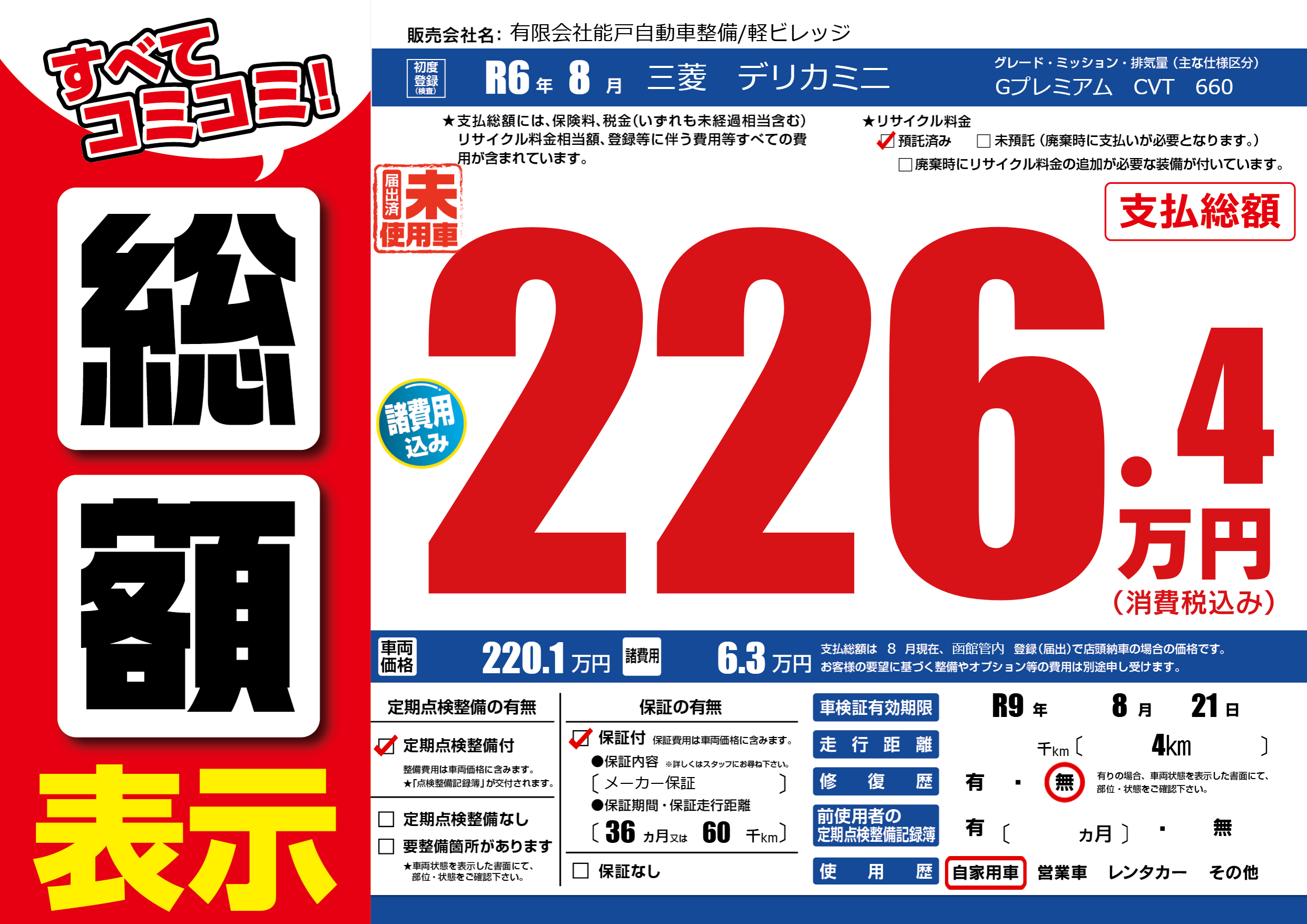 | 走行キロ | - | 初年度登録 | R6年8月 |
