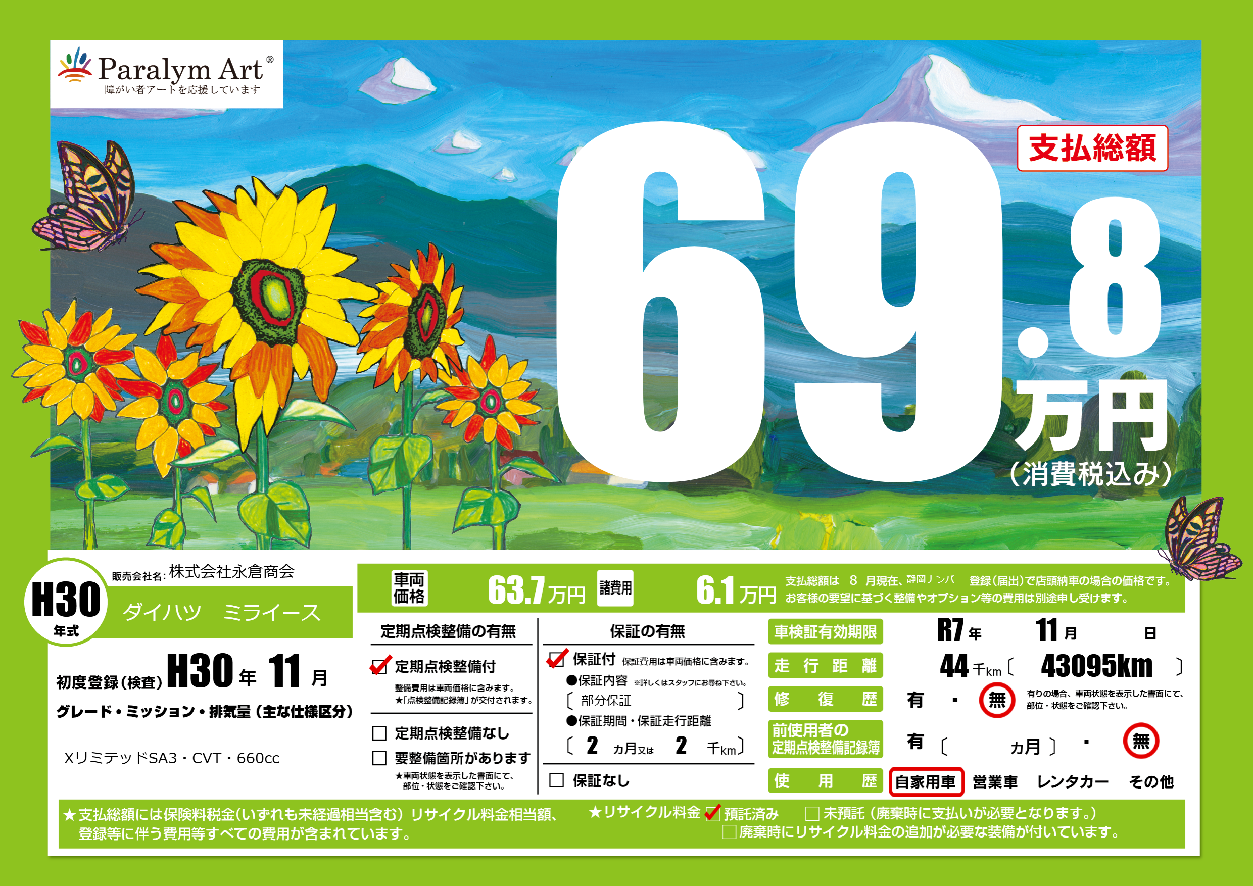 | 車検制限 | R7年 11月 - 日 | ||