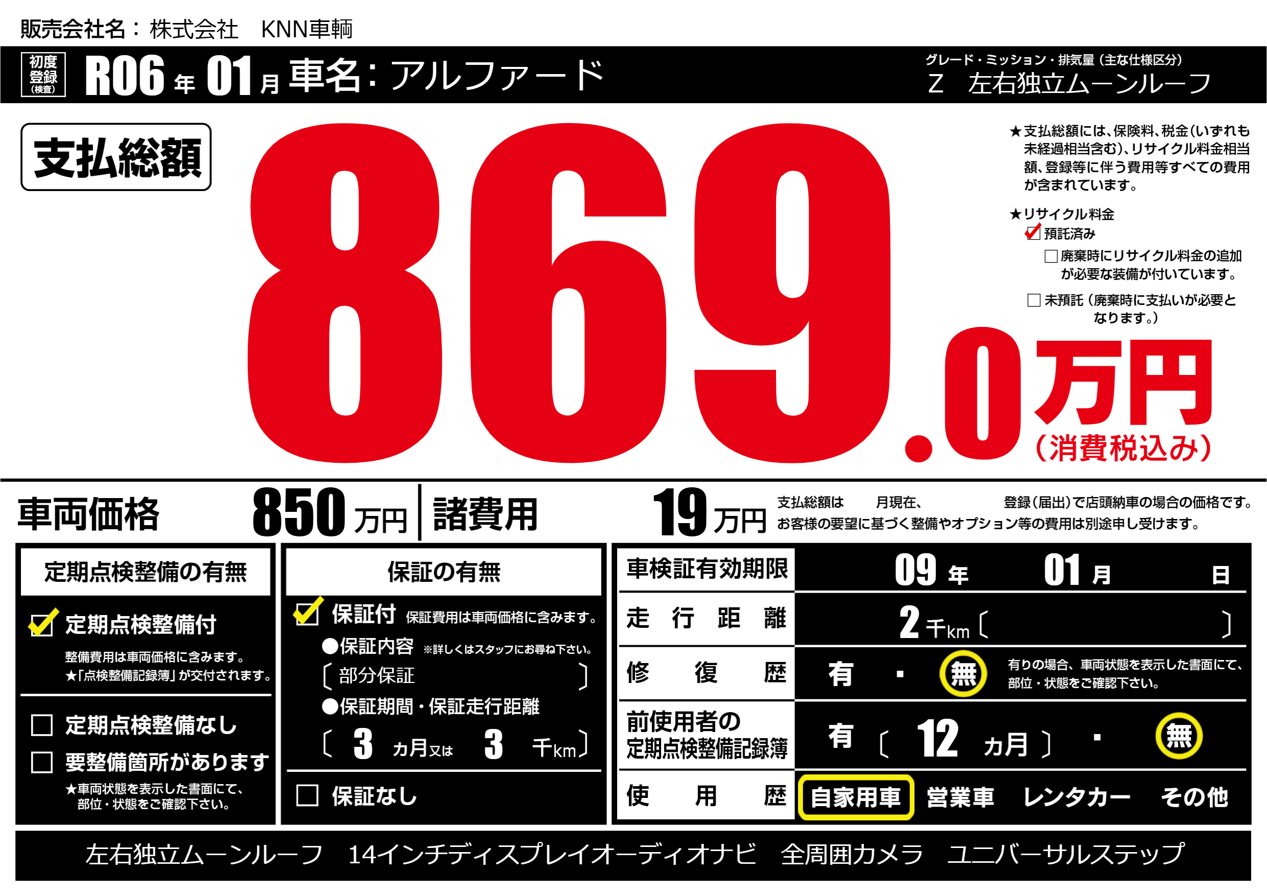 | 車名 | アルファード | グレード ミッション 排気量 |