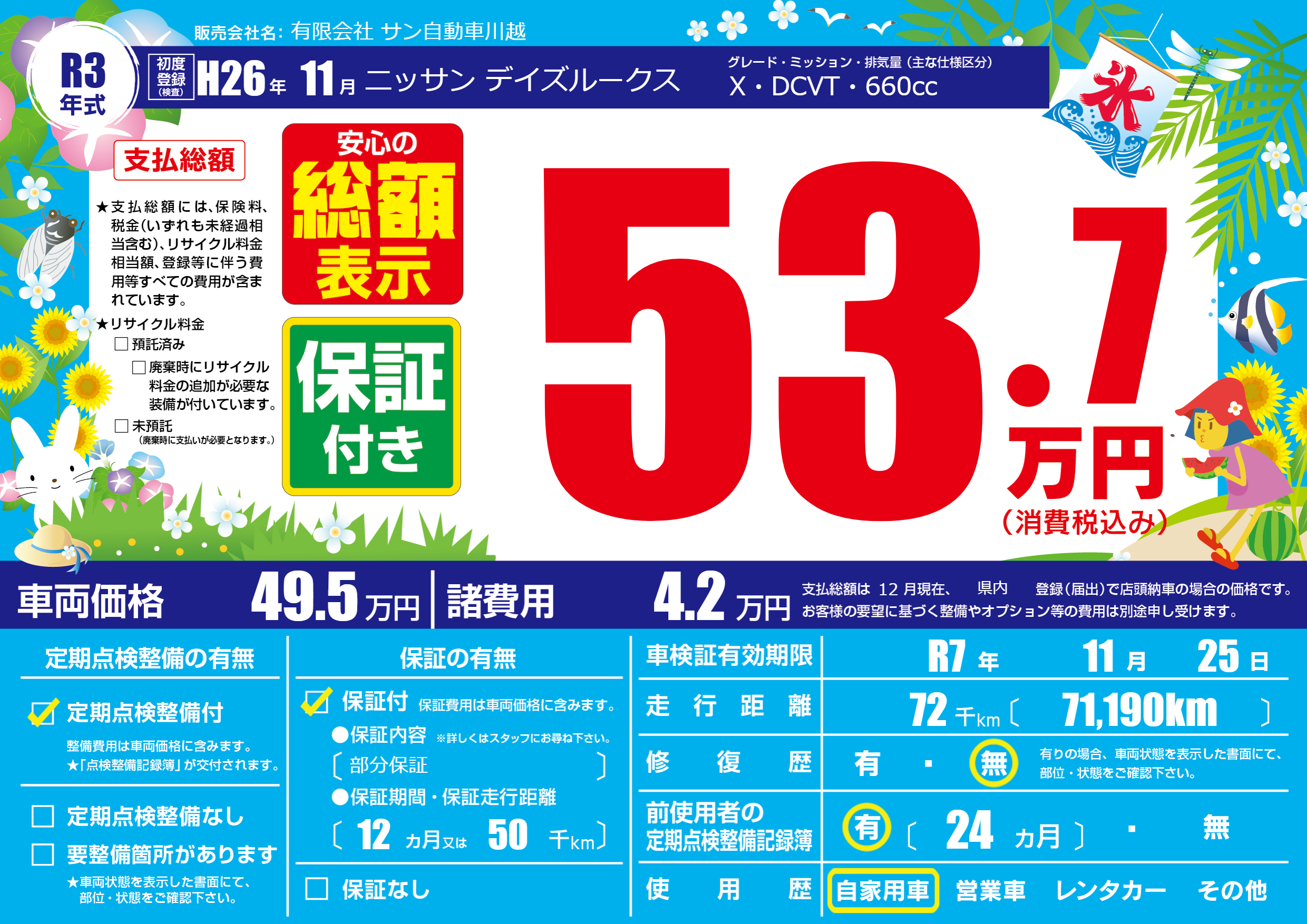 なし | 車検制限 | R7年11月25月 |