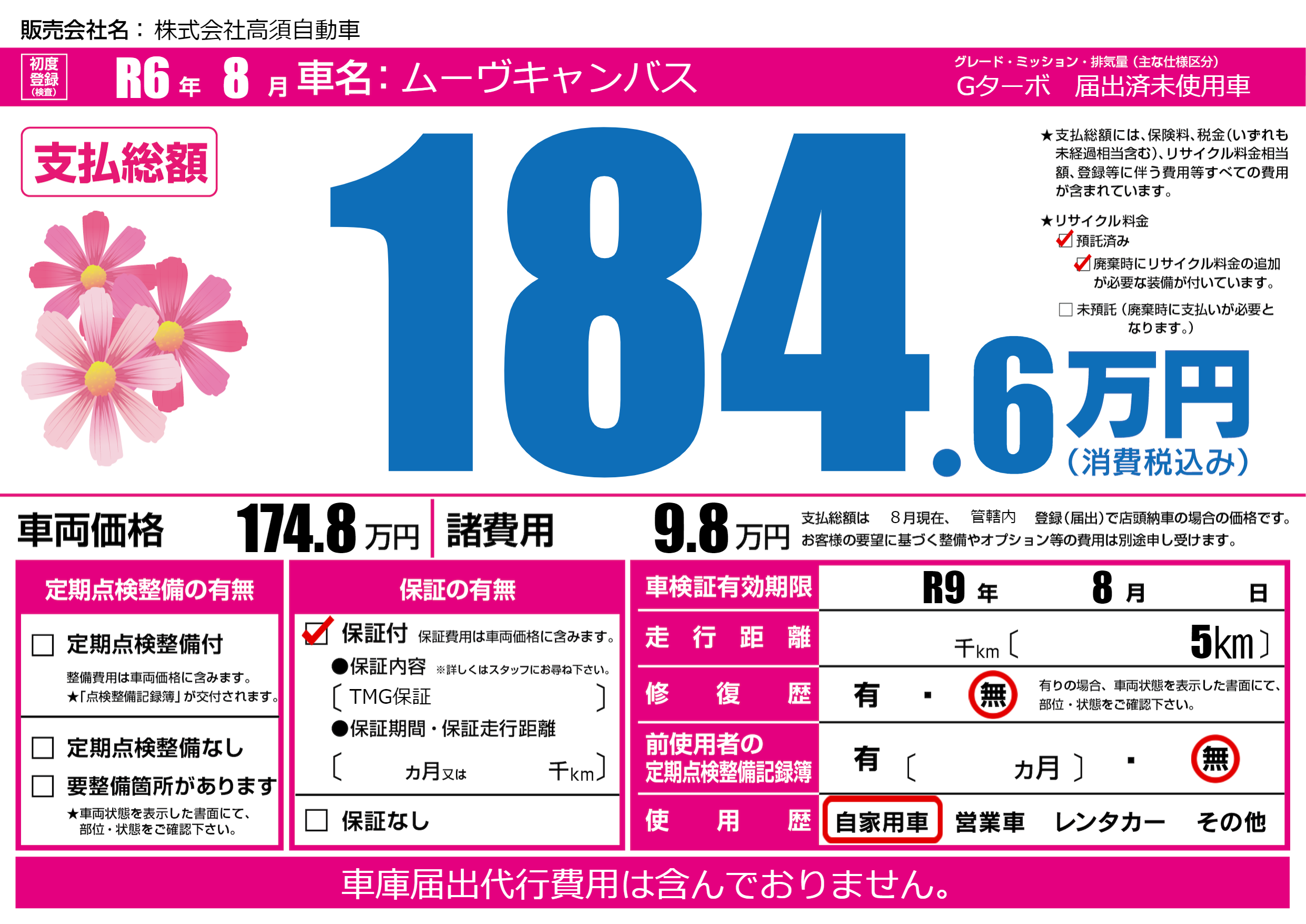なし | 車検制限 | R9年8月---月 |