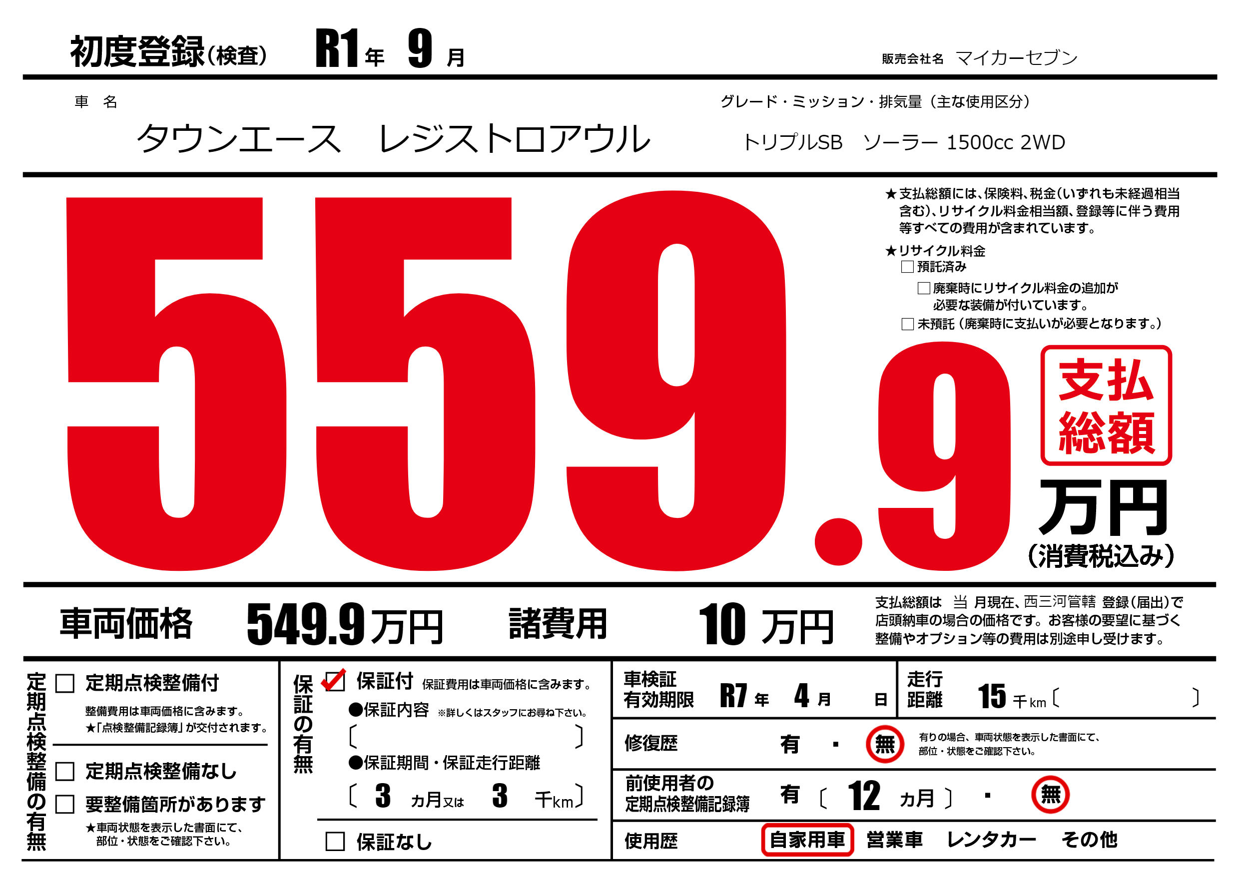 なし | 車検制限 | R7年4月---月 |