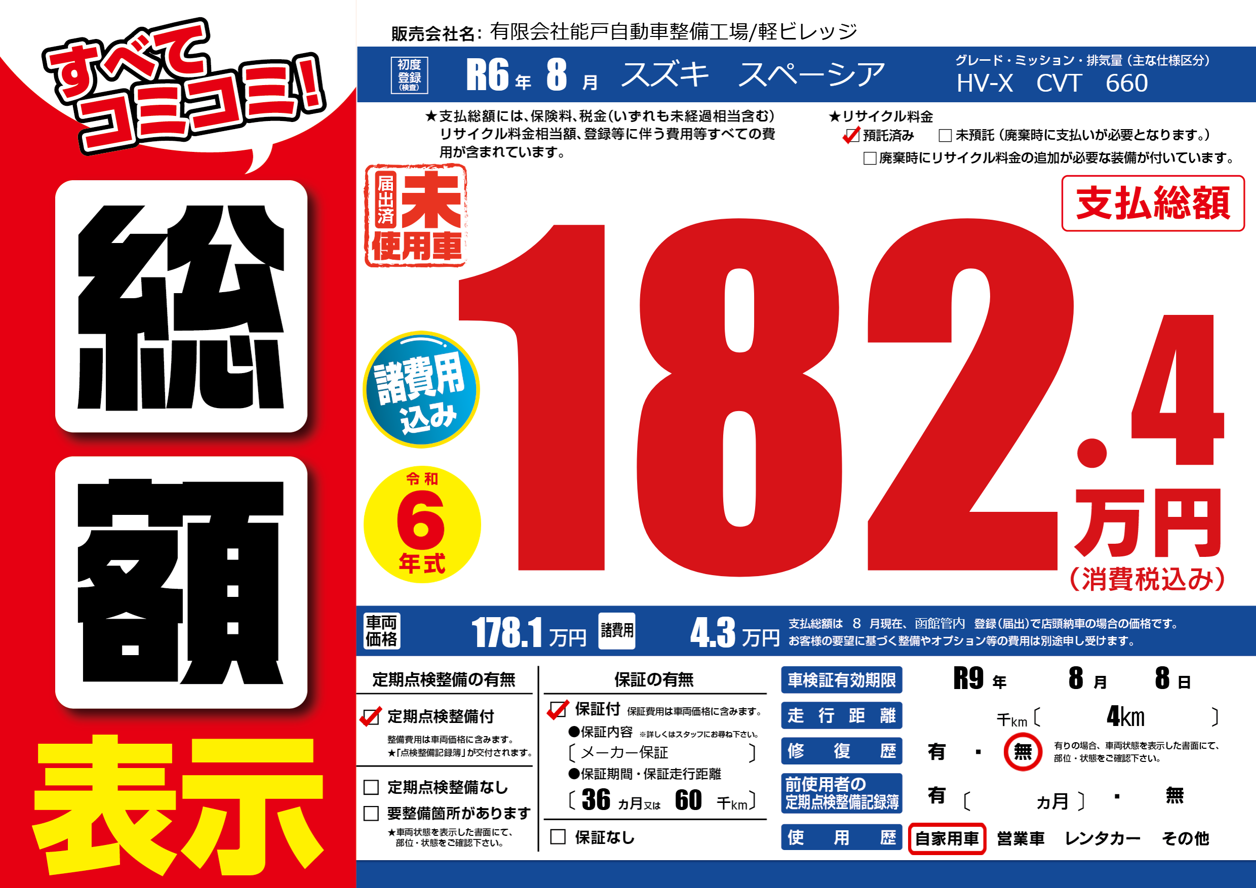 | 走行キロ | - | 初年度登録 | R6年8月 |