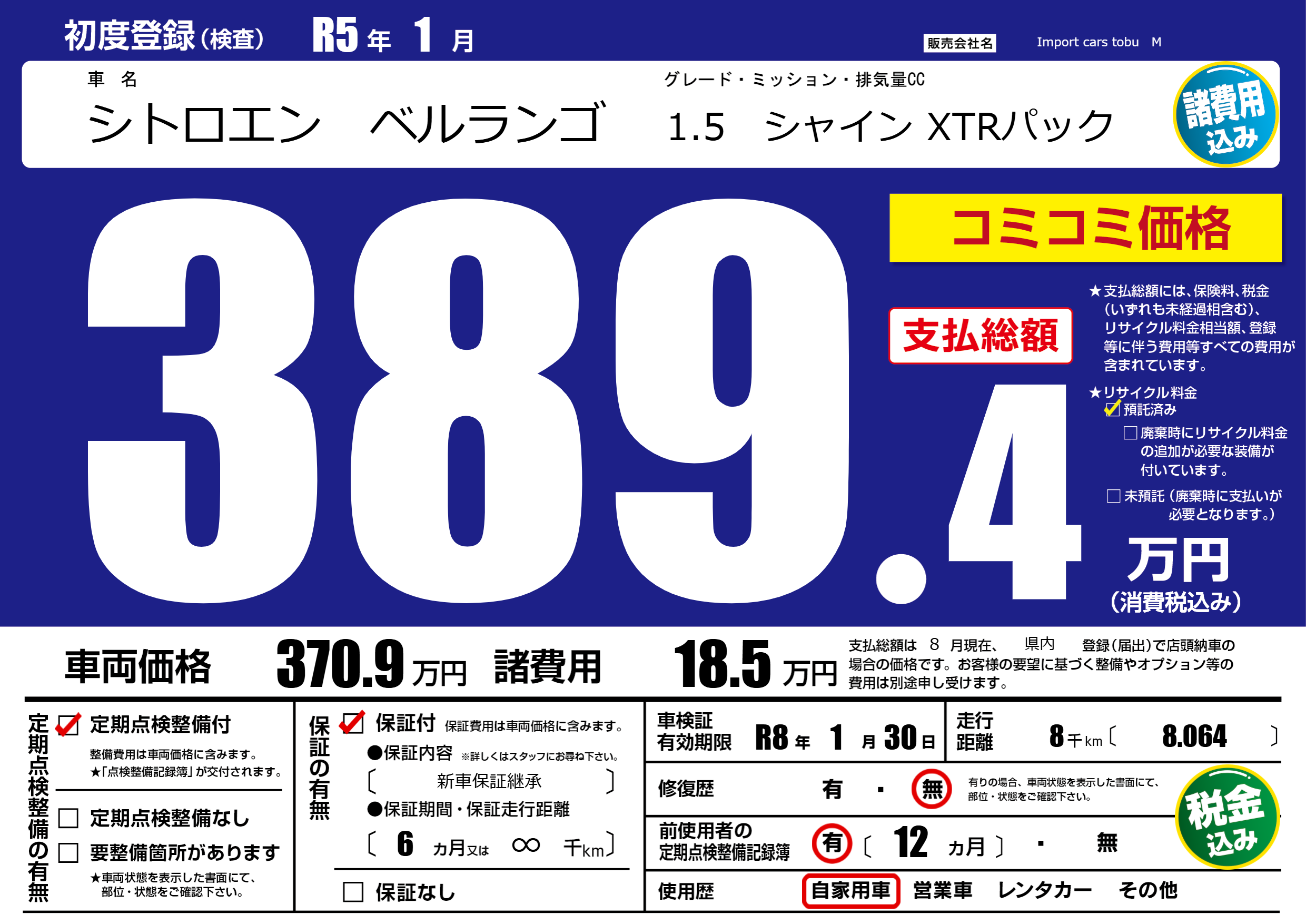 なし | 車検制限 | R8年1月30月 |