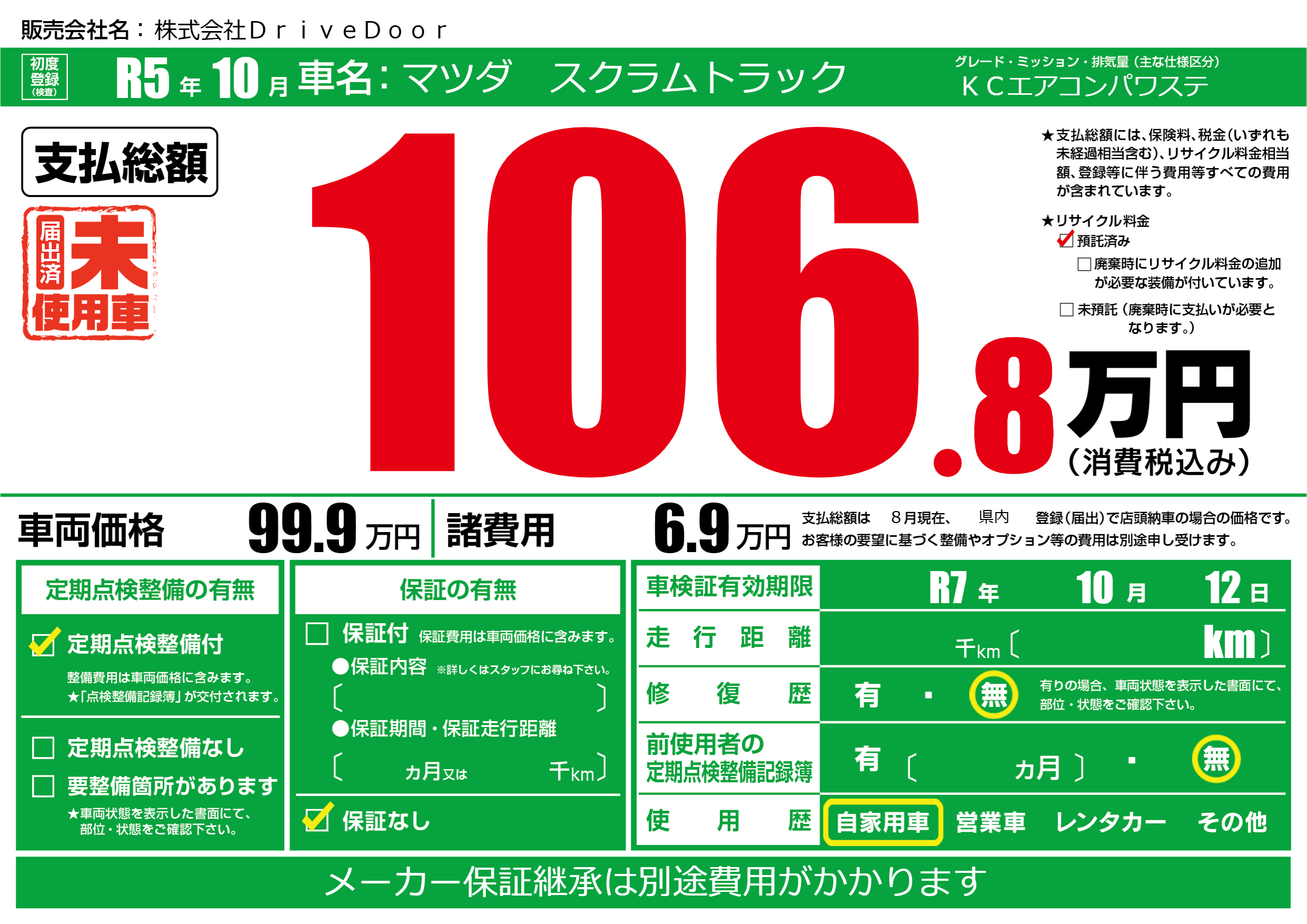 なし | 車検制限 | R7年10月12月 |